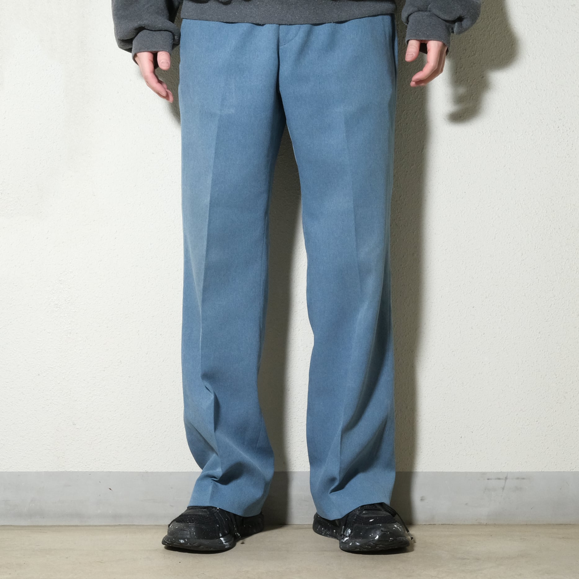近年評価の高まるアクションスラックス。プレーンなデザインでシワになりづらいポリエステル100%の生地が特徴。ゆるいフレアで今のトレンドにハマるアイテムです。