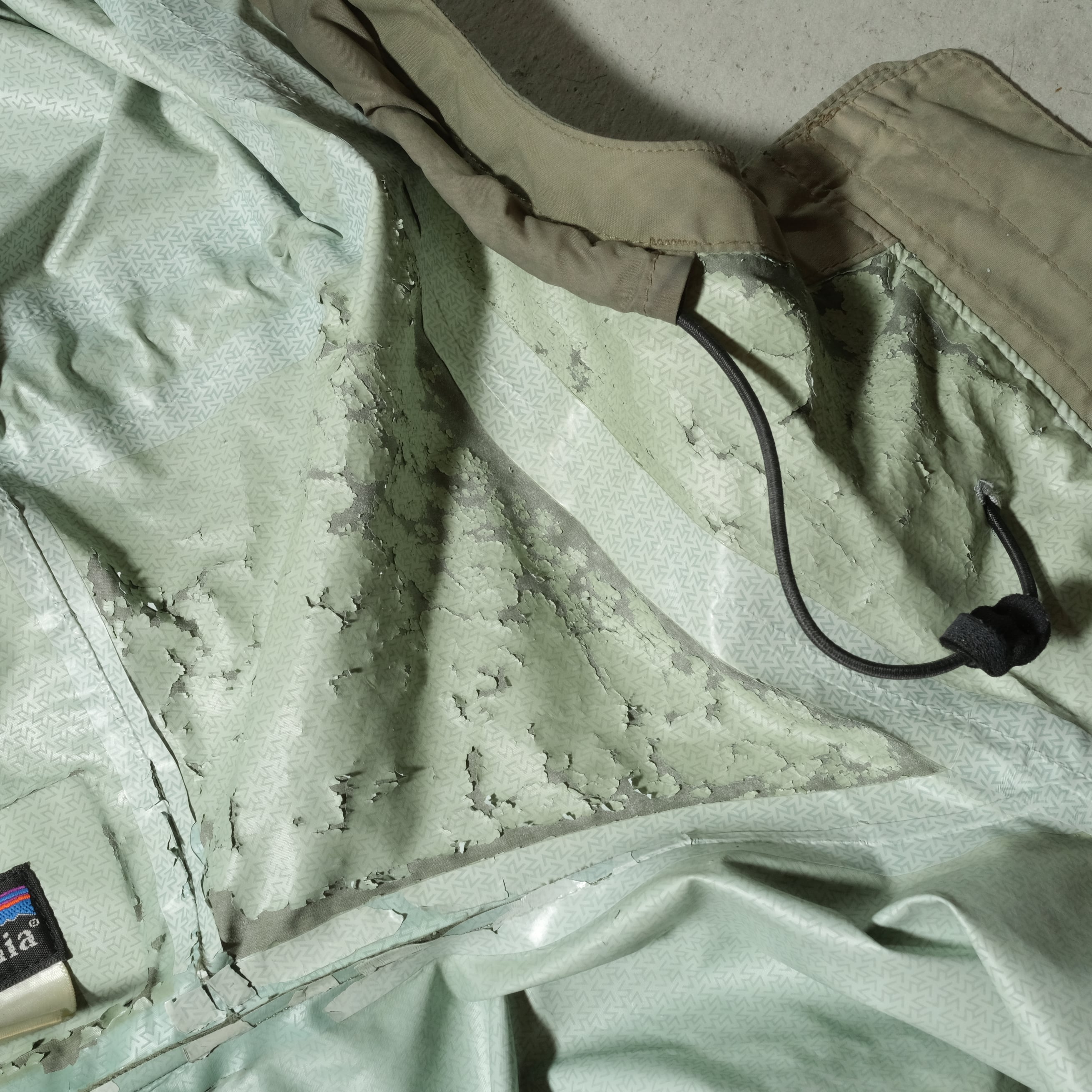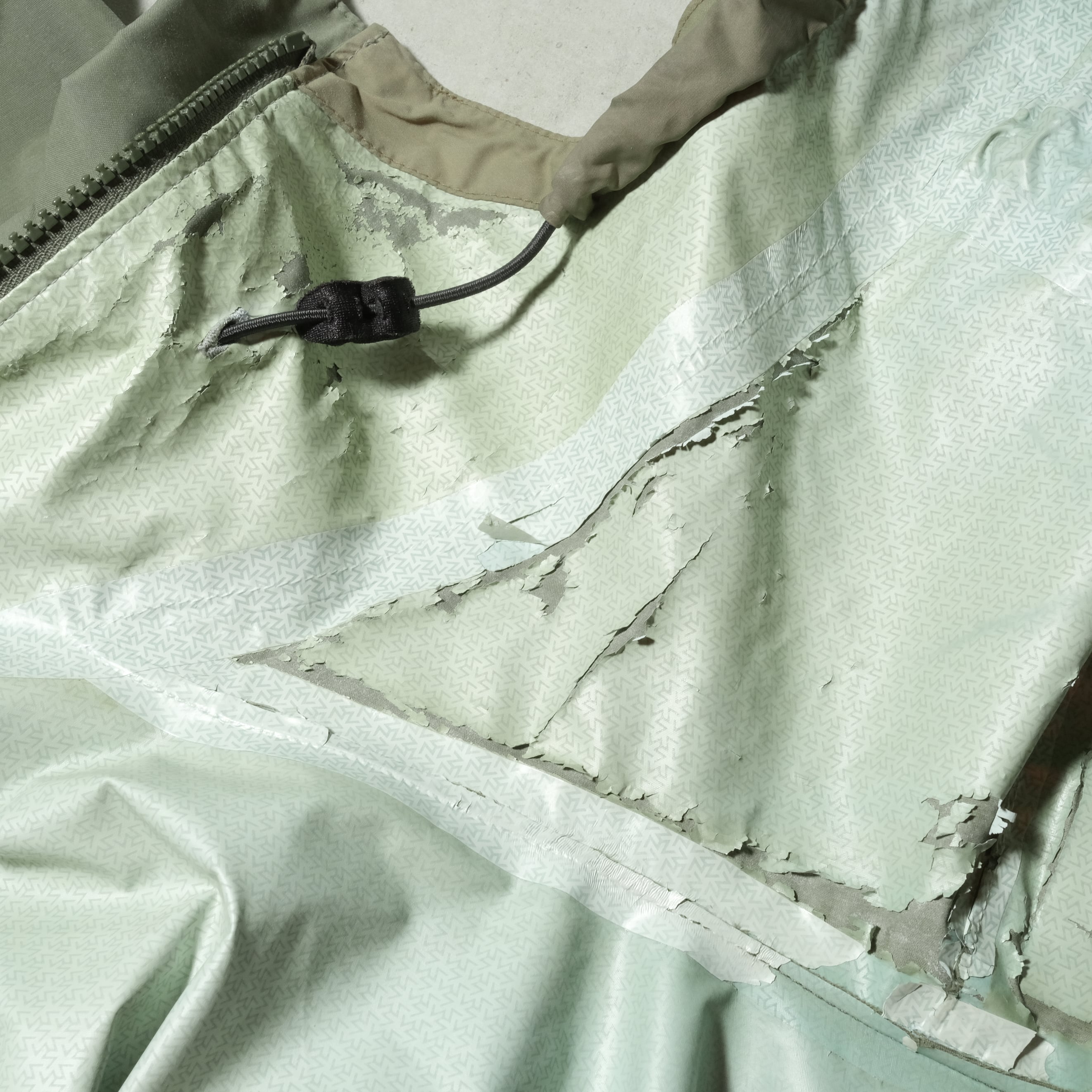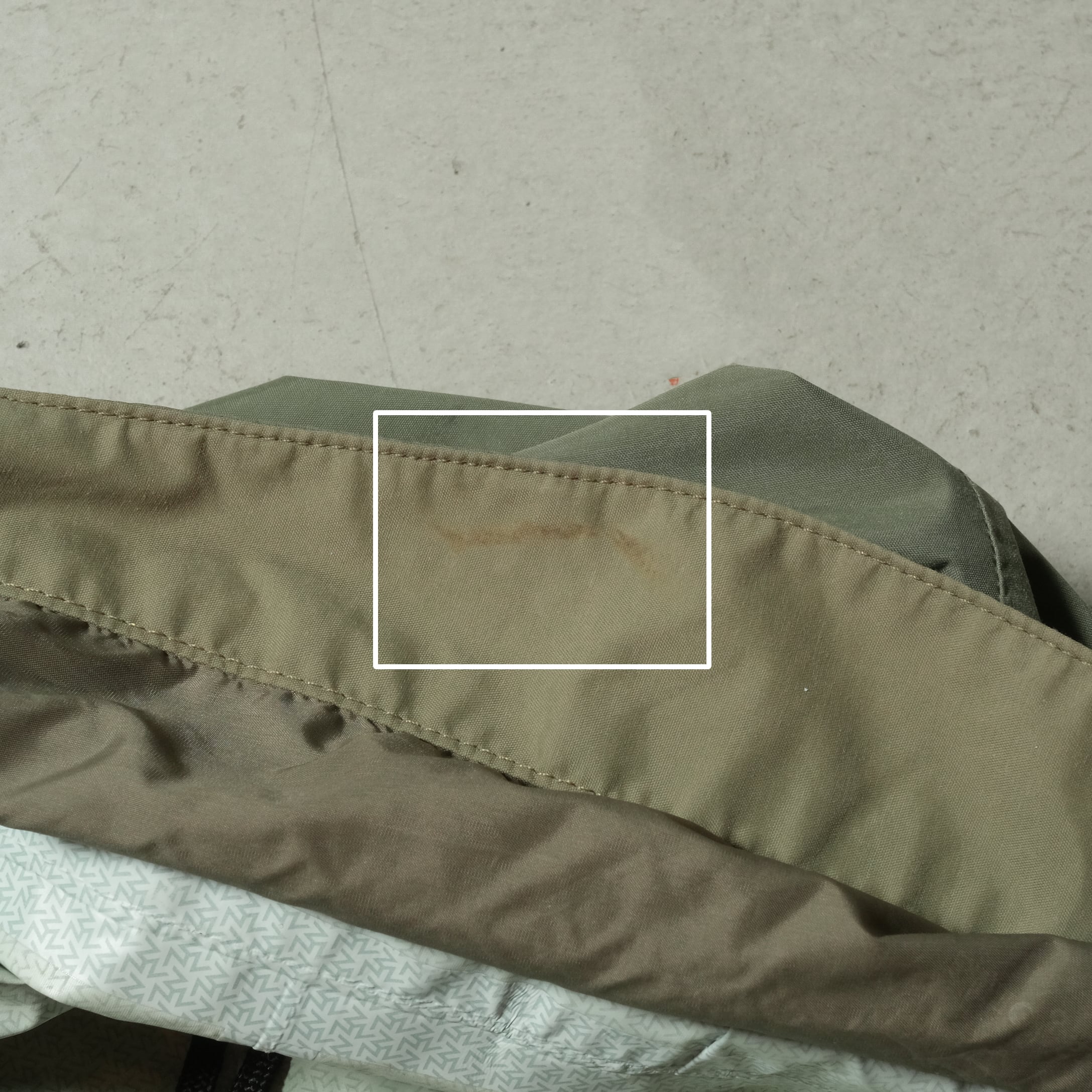 【状態】全体的に着用感、スレ。内側コーティングに剥離、薄汚れ。フード内側に汚れ。袖口のコーティング剥離。その他目立つダメージやヨゴレなど見当たりません。
