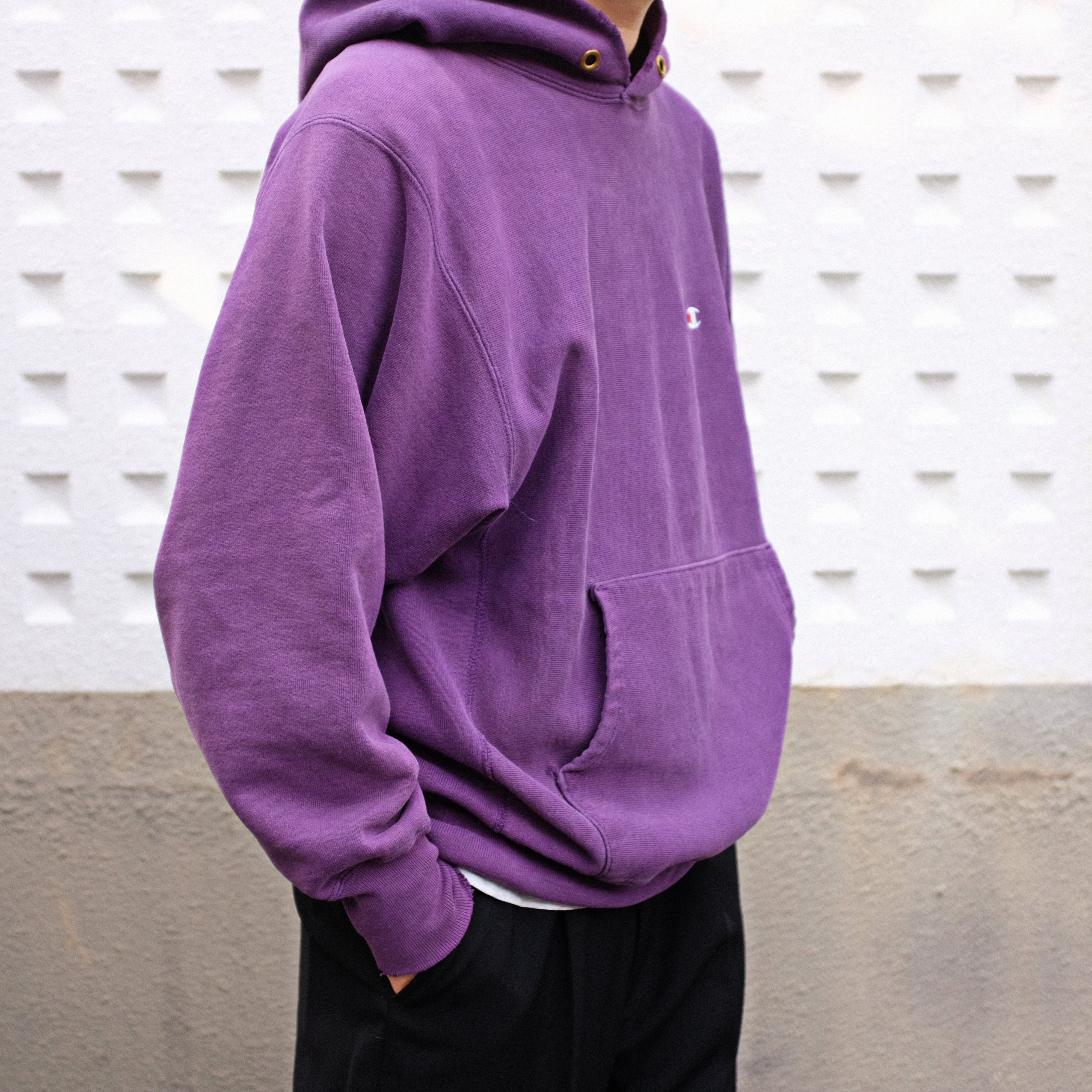 90's Champion RW hoodie "purple×目あり" リバースウィーブ パーカー