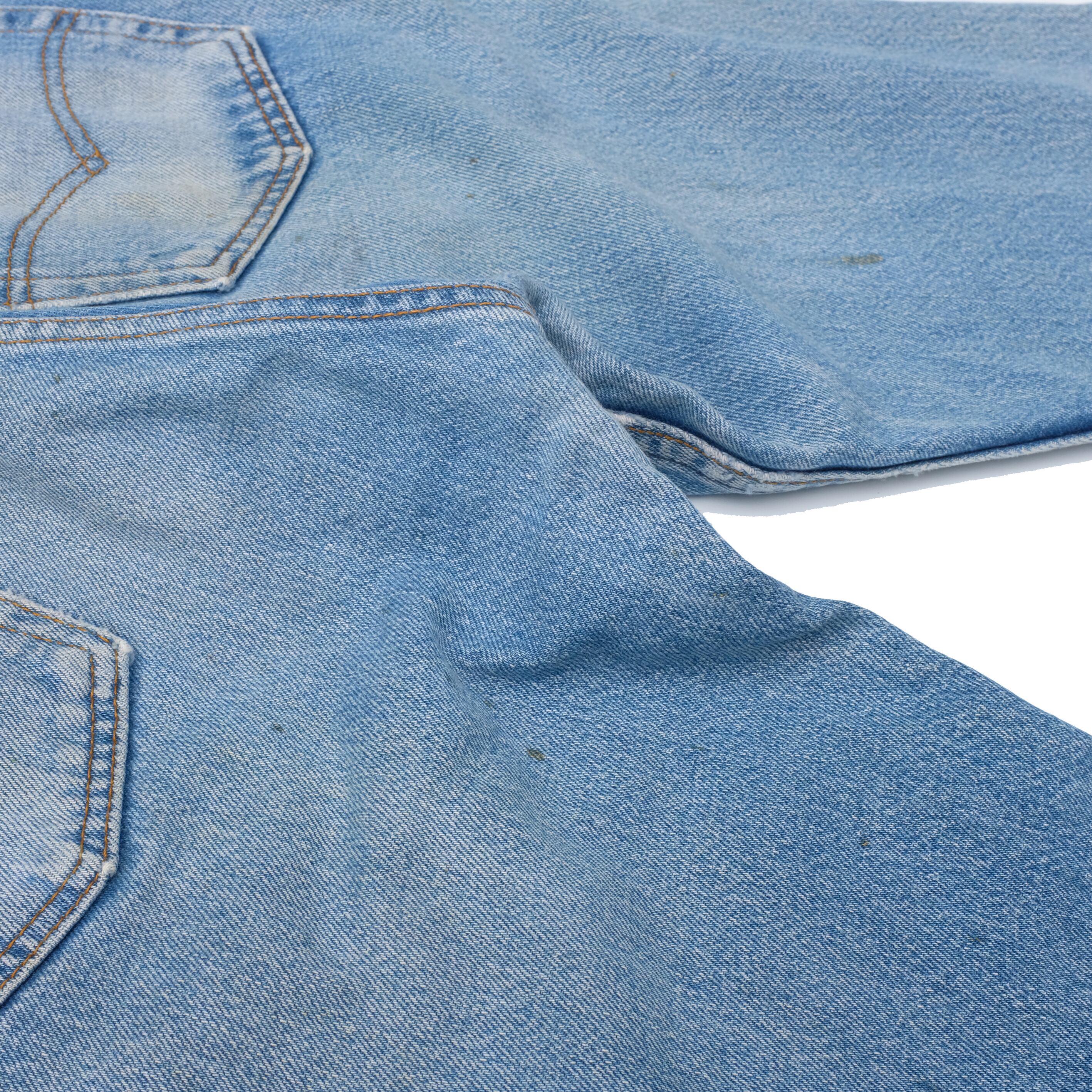 タグ、パッチなど欠損、文字消えなどしていますが、リベット裏アルミなどのディテールから90年代前半のモデルとなります。状態としてはコインポケット、右太もも前と後ろに若干のキズ、臀部に若干のヨゴレなどとなります。