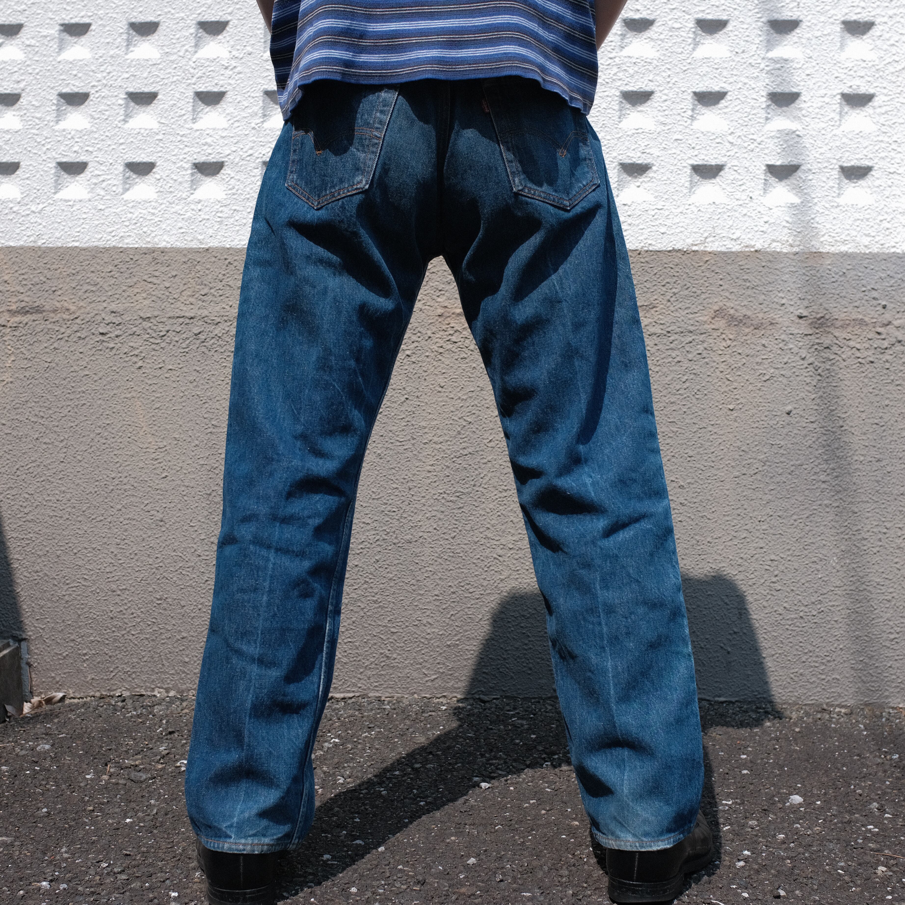 なんといっても、この濃い色。色落ちを楽しむのもよし、このままの状態をキープするのもよし。サイズもゴールデン。言うことなしの一本です。やはり00年代から全てがUSA製ではなくなり、ステッチの形が変わり、"古着らしさ"がなくなってしまうんですよね。このモデル、そしてこの直後のモデルまでが66前期からの流れをくむ最後のモデルだと思っています。センタープレスを入れた形跡があることも含め、"らしさ"を感じる良い一本です。