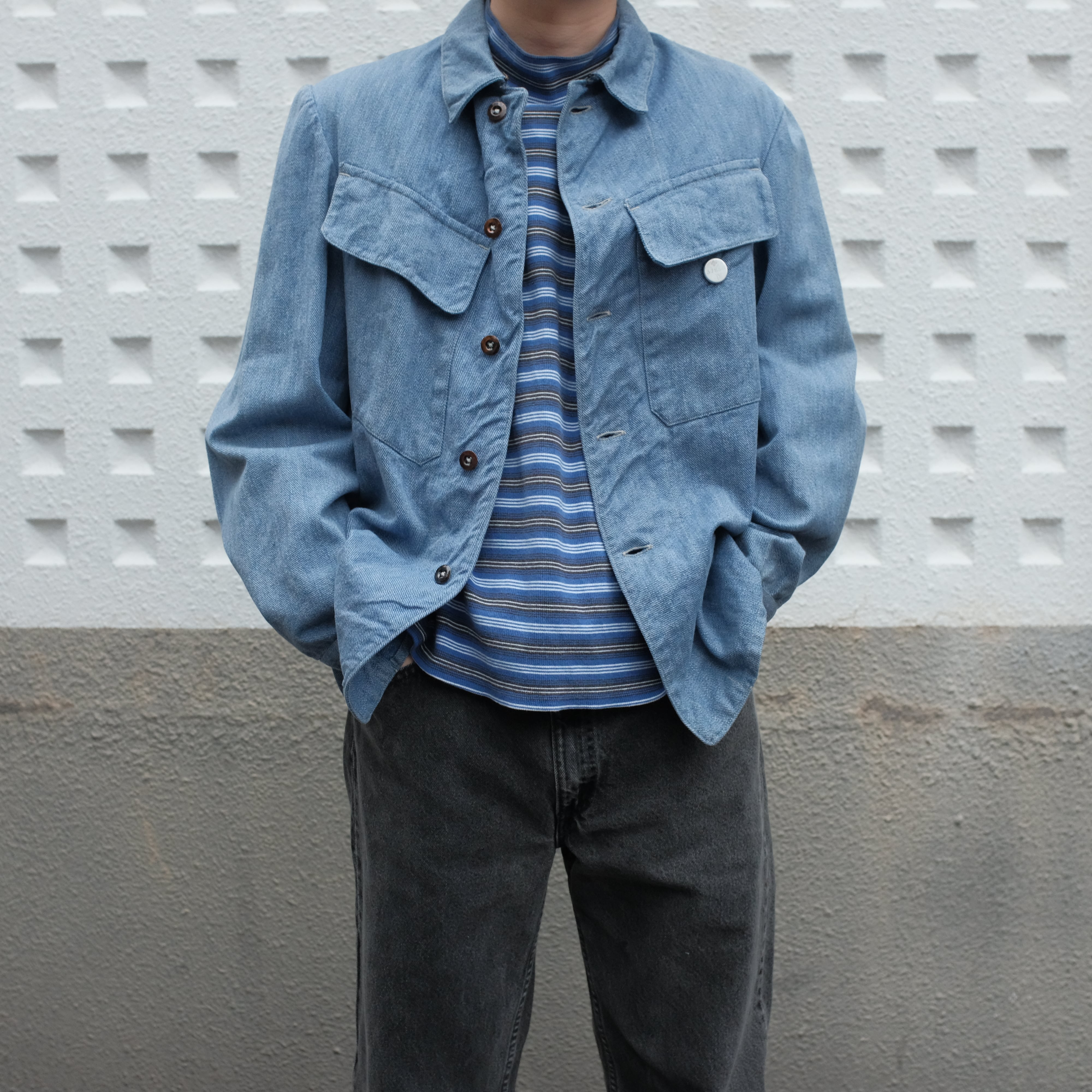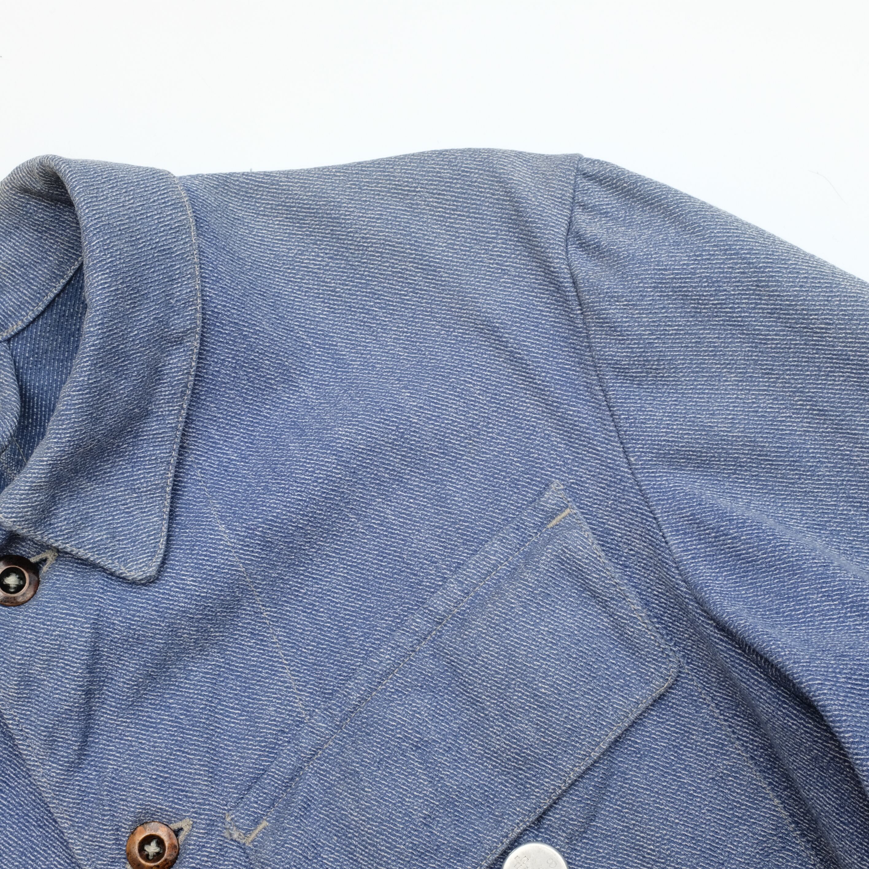 ぶ厚めのozのデニムに斜めに入るポケット、そしてメタルのボタンなどUSものとは違ったヴィンテージの雰囲気が素晴らしいです。ユーロ古着ですが普段アメリカ古着を着る方にもお勧めできる一枚。サイズもメンズM程度の抜群の一枚です。ぜひご検討ください。