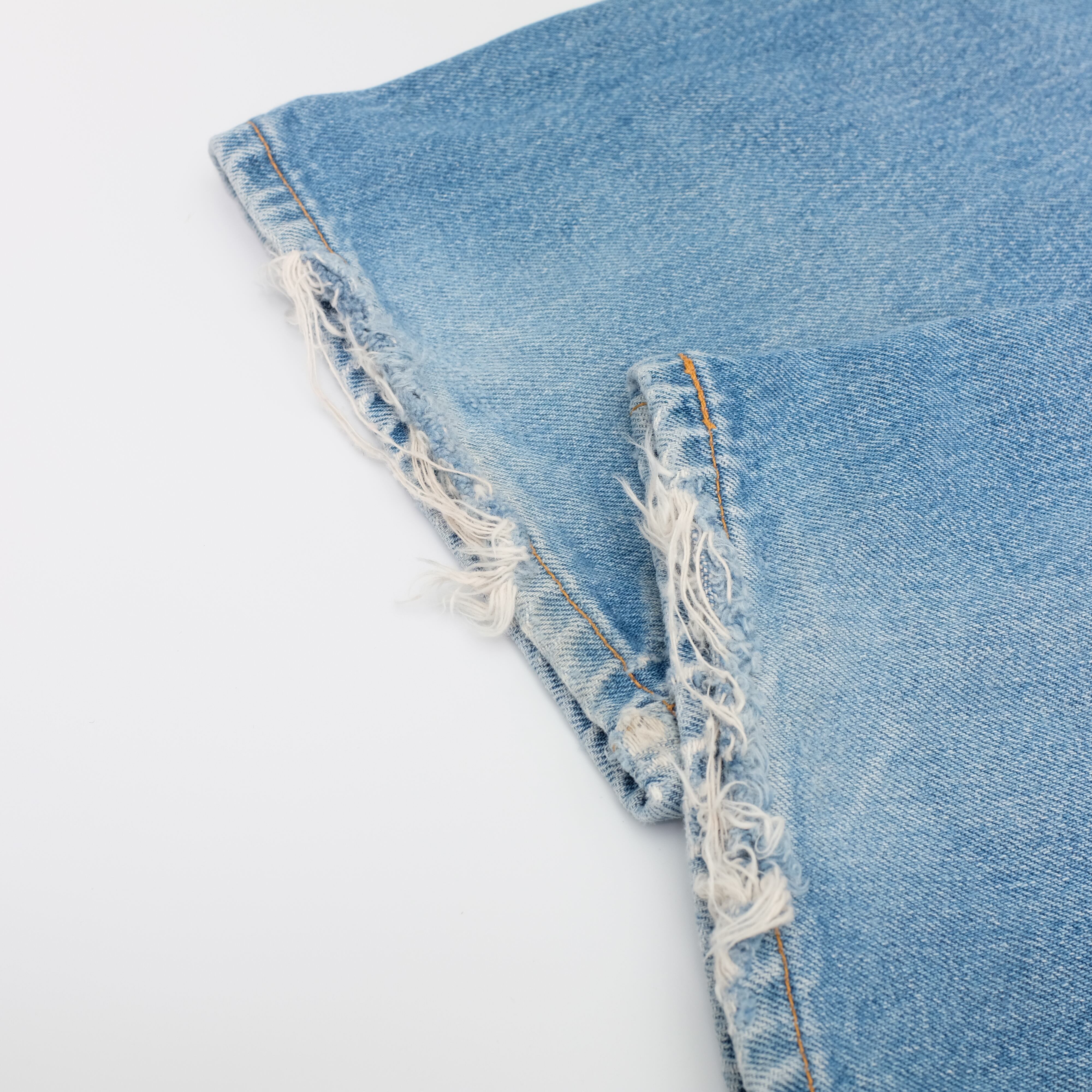 99年12月製造と、本当に最後の90'sリーバイス。メキシコ製ですが、USA直系ですね。色も見劣りしません。W34表記とサイズも需要の多いサイズ。ほどよくヒゲが入った良い表情のデニムは意外と探すと見つかりません。ぜひご検討ください。