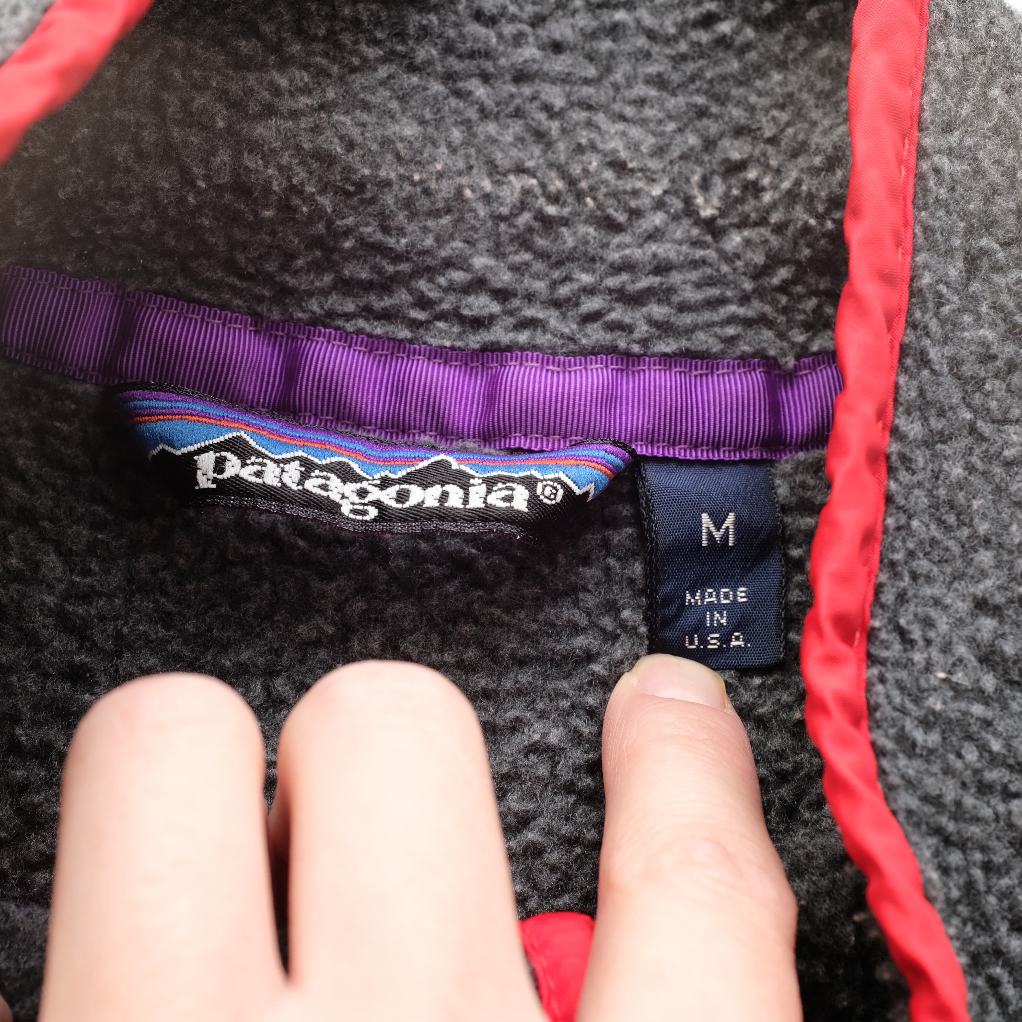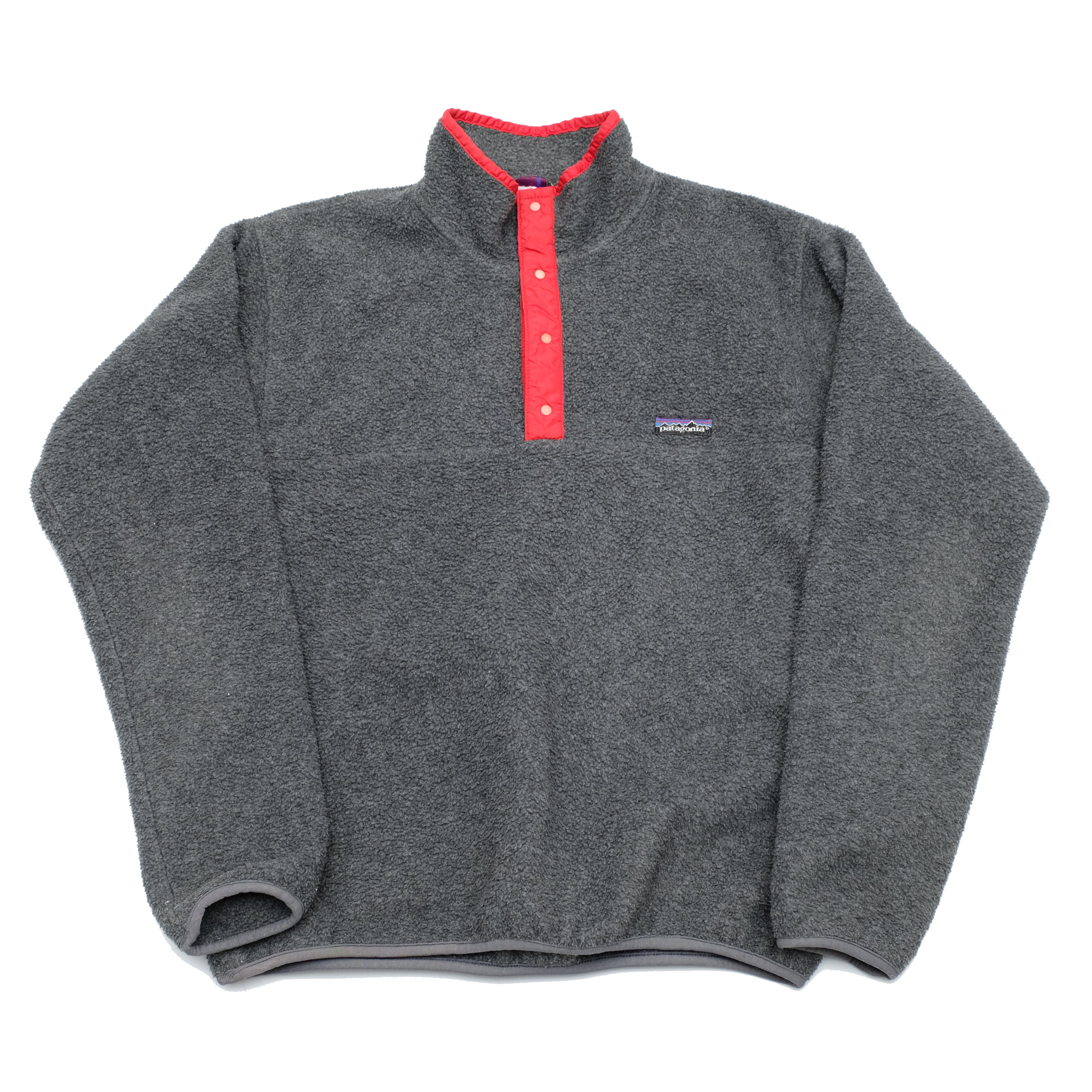 フリースの毛足の長さ、スナップ部分の素材の切り返しがこの年代ならではの素晴らしいデザインです。チャコールグレーにレッドというカラーリングもpatagoniaらしくて素晴らしいですね。