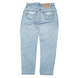 こちらの品番は550などに比べてもさらにきついテーパードシルエットのものとなります。中でもこちらの個体は全体的にクラッシュした雰囲気とアイスブルーの色目がグランジ感溢れる一本。90年代らしいいいデニムです。ぜひご検討ください。