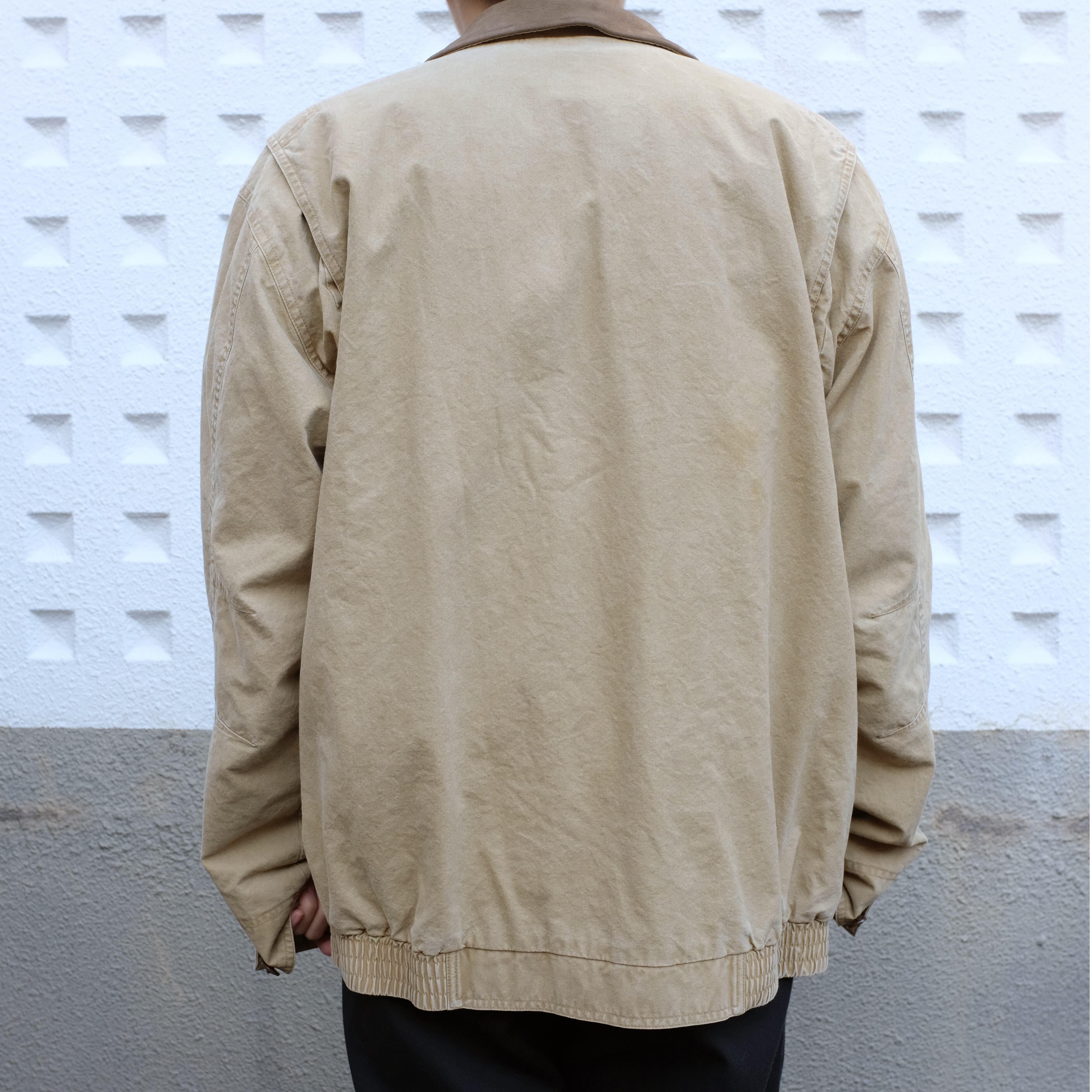 年代は浅めですが同ブランドらしいしっかりした作りのいいジャケットです。デザインのポイントである、襟部のレザーもしなやかな質感を保っています。ハンティングジャケットですが、TALL LAGREのサイズですのでコートのようにガバッと着ていただきたい一枚。是非ご検討ください。