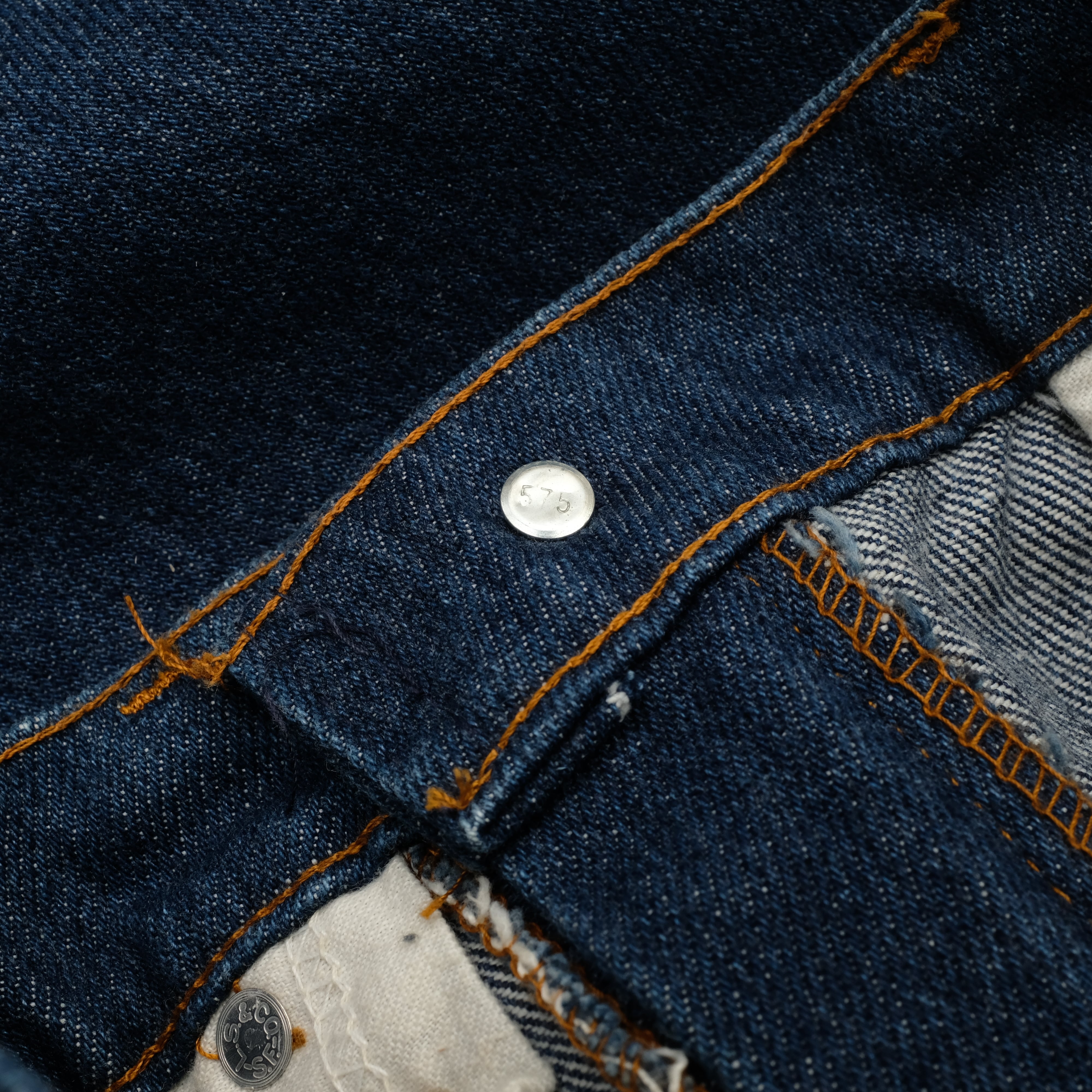 アタリもまだついていない素晴らしいコンディションのこちら。なかなか見かけることの少ないレアな品番の509。こちらは519のようなシルエットのポリコットン混紡のデニムパンツです。オレンジタブがやはりデザイン的には良い要素ですね。この生地特有の色落ち、穿きやすいストレートシルエットが魅力的です。裾上げがされておりますが、内側がネイビー、外側がオレンジステッチで縫われており好印象。また、オーバー目に穿いて、ベルトで絞っていただくのも良いでしょう。
