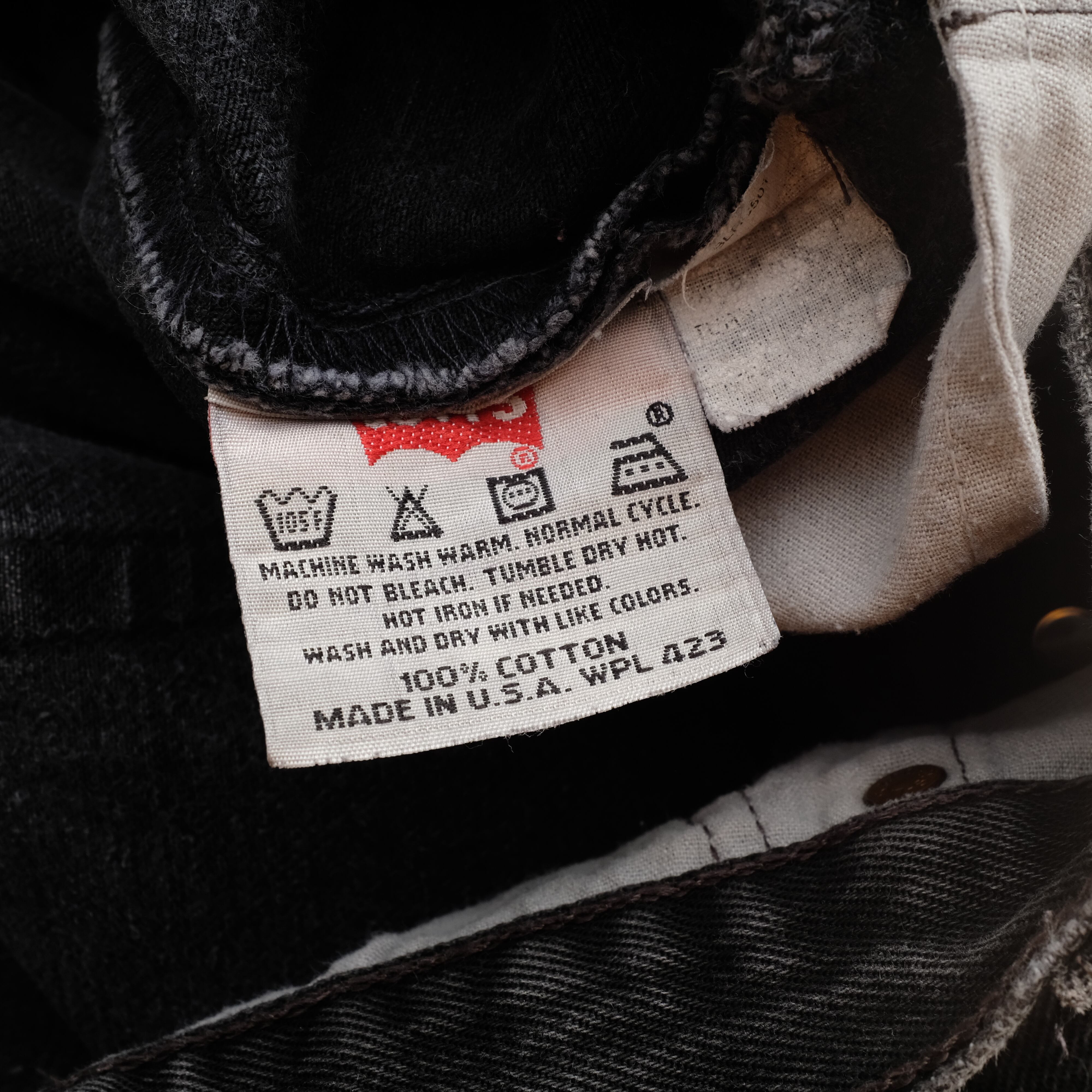 裾部やバックポケット、インシーム部分にダメージがある個体ですが、ブラックのカラーが色濃く残る素晴らしい一本です。表記31×30とサイズバランスも良いですね。トレンドもあり、年々注目の集まってきているUSA製リーバイスのブラックデニム、是非ご検討ください。