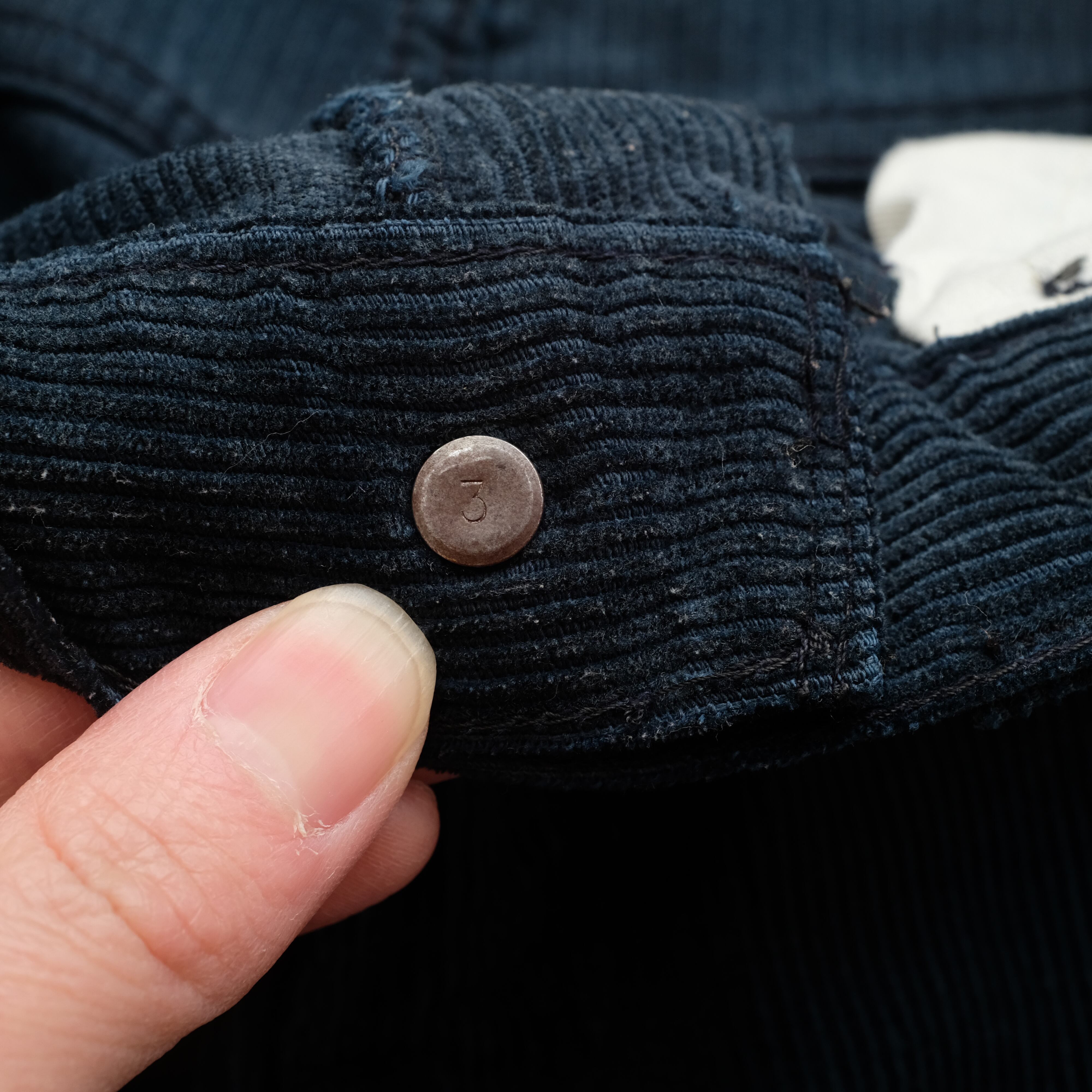 ブラックのBIG-Eタブのつくこちらの一本。この年代でオリジナルのテーパードシルエットにこのブルーとグリーンの中間のようななんとも言えないネイビーのカラー。素晴らしいパンツです。519などとは違った太畝のコーデュロイがヴィンテージ感のある良い質感です。