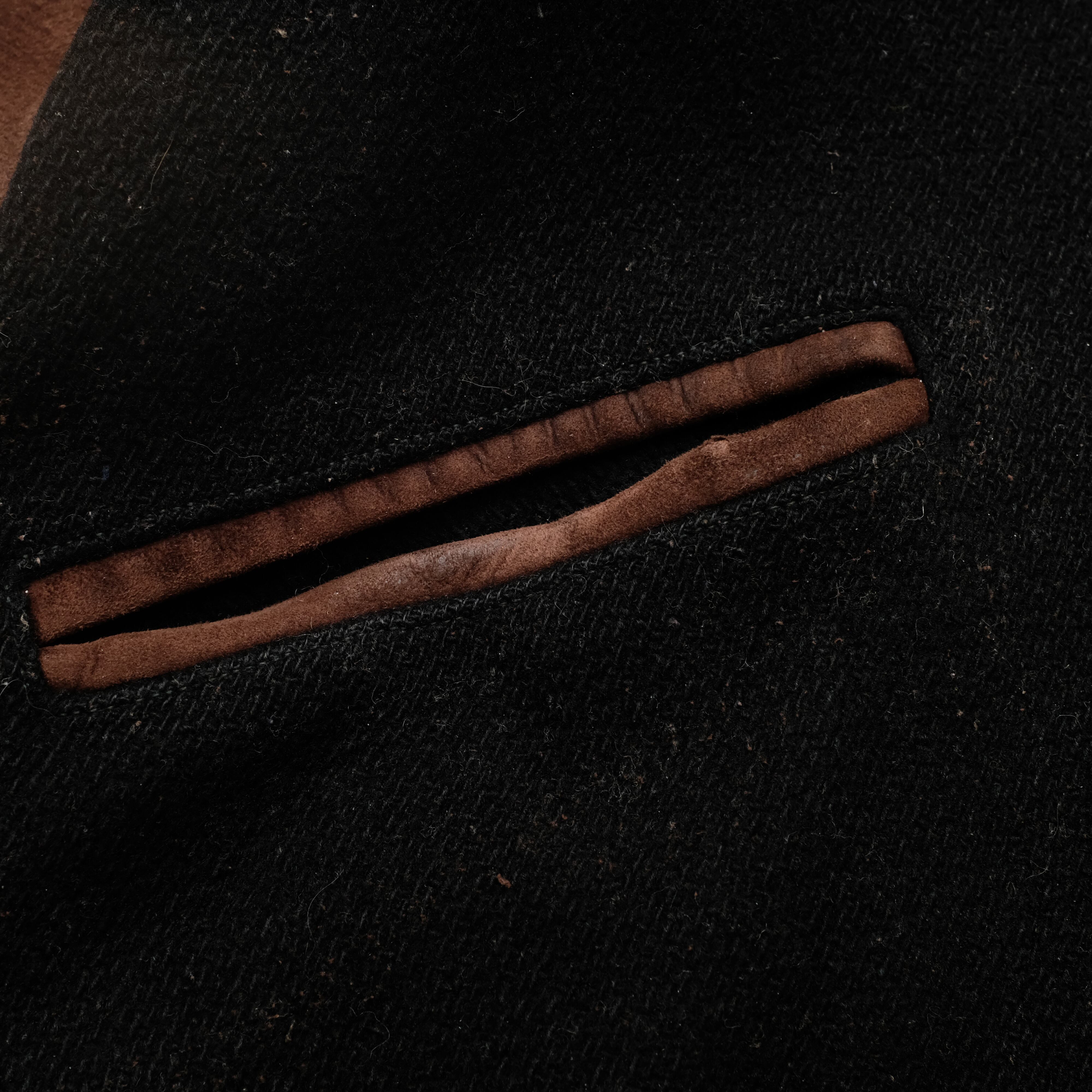 【状態】全体的に着用感、スレ。袖リブダメージ。内側キルティング左腕付け根、腹部リブ付け根にダメージ。レザーや生地の質感は硬くなったりもしておらず素晴らしい状態です。スエード部分リブ付け根にスレ。ブラックのメルトン生地表面に、ネップやところどころ色落ちが見られます。