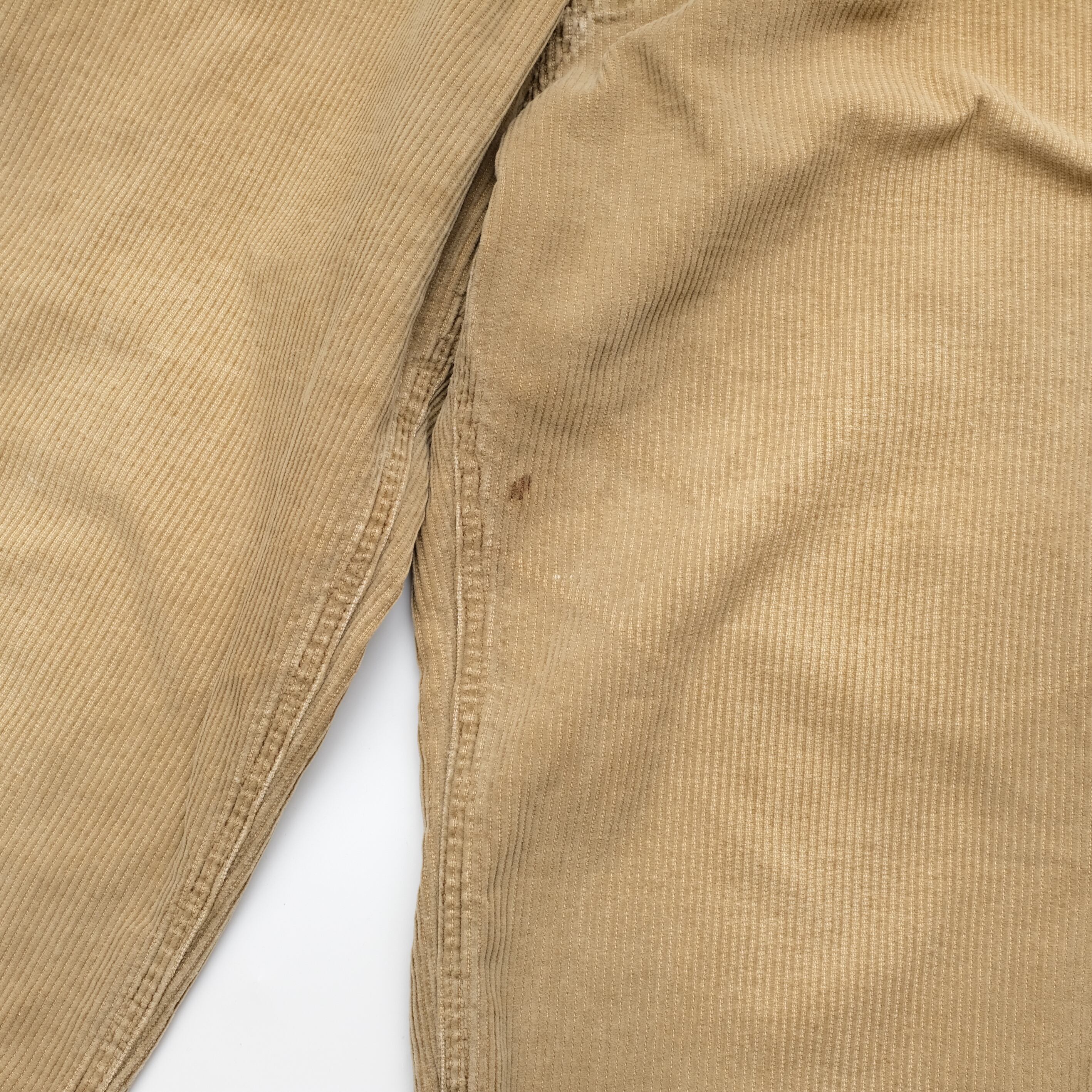 ヒップポケットにもリベットのつくディテールのこちら。やはりポイントとしてはこの太畝の生地でしょうか。コットン100%ですのでリーバイス519などとも違った質感が魅力的です。表記32に対して実寸30.5ですが、股上が深めですので実寸通りのサイズを穿かれている方には太もも周りに若干ゆとりのあるつくりでしょうか。近年注目のOLD GAPからの一本、ご検討ください。