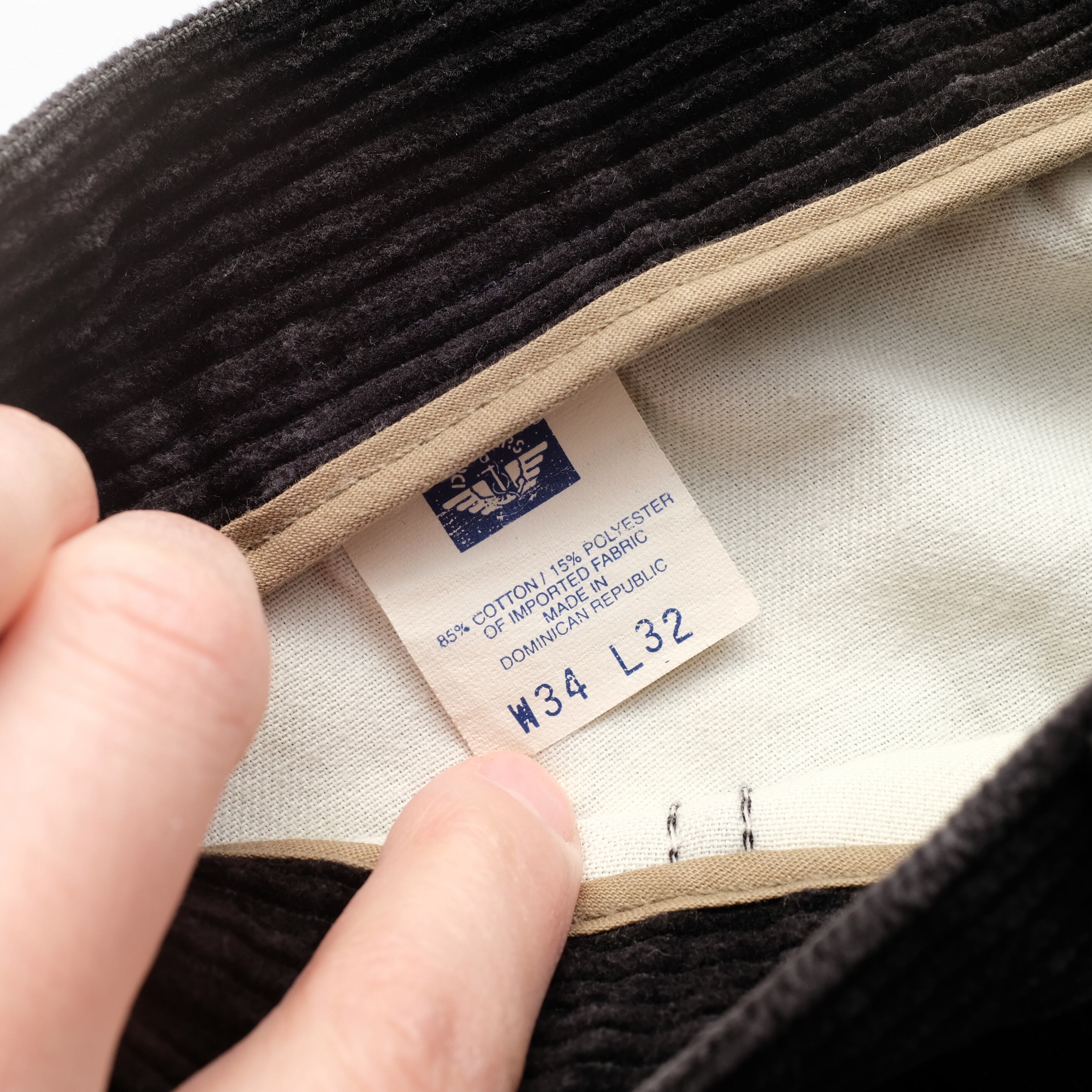 リーバイス傘下のこちらのブランド。黒に近いダークブラウンに極太シルエットの映える一本。タグもこれ以降のものとは違い、なんとなくリーバイスのそれを感じさせるデザインがいいですね。レングスが表記より短めですが股上も深く太めのシルエットですのでいいバランス感です。オススメの一本。是非ご検討ください。