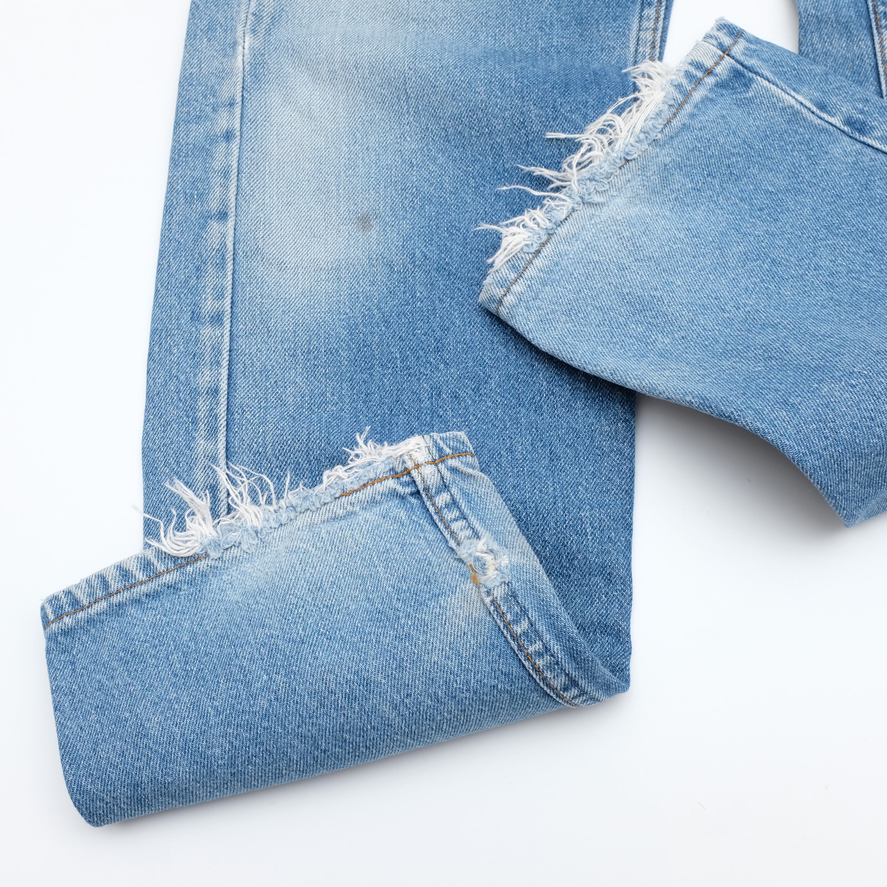 まずはやはり501に比べ細身のシルエットにアタリのくっきりと出た色落ちが秀逸ですね。しっかりと穿きこまれたぶん、各所若干のダメージがございますが、着用に支障のあるレベルではありません。メキシコ製なども多く見かけますので、501よりある意味希少といえる505。是非今のうちに抑えておきたいパンツのうちの一つではないでしょうか。