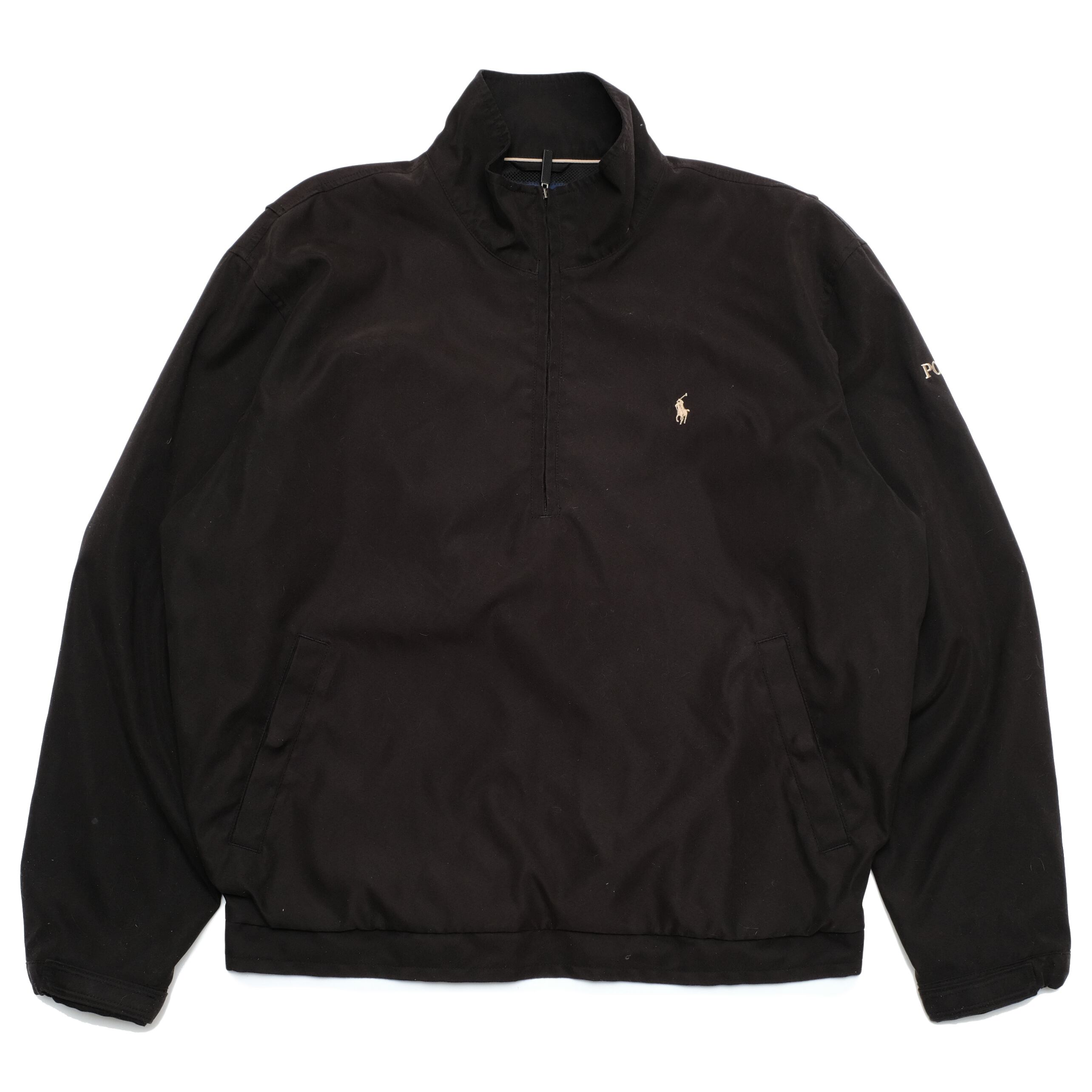 ブラックのカラー、胸に入るポニー刺繍がアイコニックな一枚。写真ですと若干赤みがかって見えますが、ブラックカラーとなります。スイングトップタイプですがプルオーバーの仕様となっているところもデザイン的にポイントではないでしょうか。やはり通常のPolo by Ralph Laurenのものにくらべて若干スポーティな印象の一枚。この春重宝しそうですね。是非ご検討ください。
