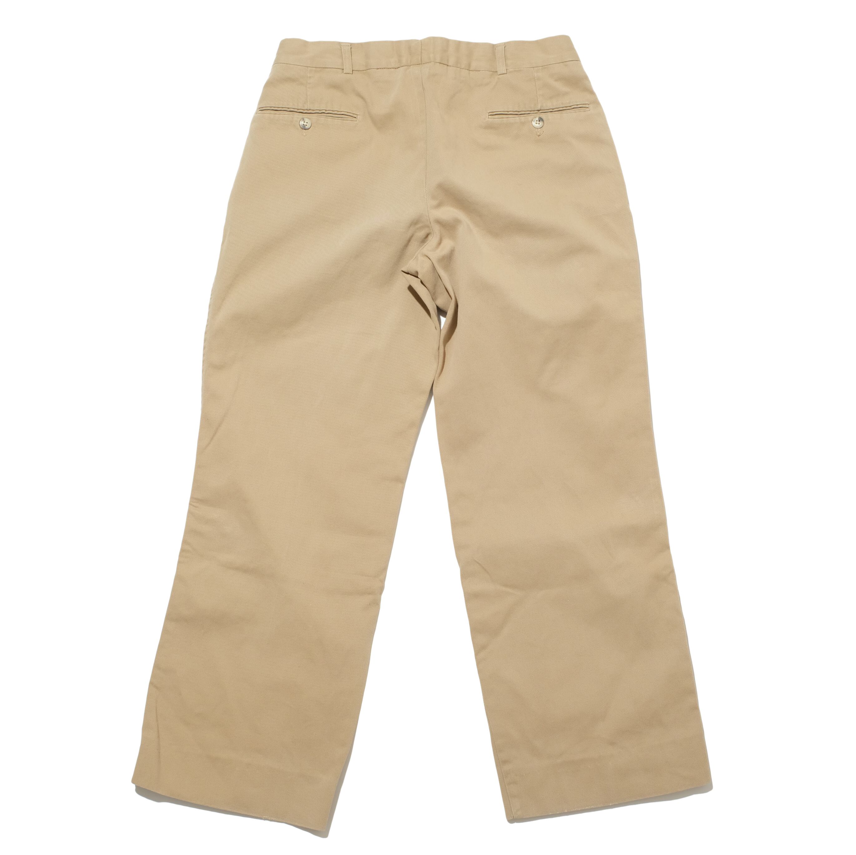 2タックがシルエット的にもデザイン的にも好印象ですし、アーミーのチノにも通づる極太シルエットが魅力的です。当時の所有者が簡易的に裾を直した形跡もございますが、そのまま穿いていただいてもいいでしょうし、もちろん直していただいても良さそうです。なかなか好条件の揃った一本、是非ご検討ください。