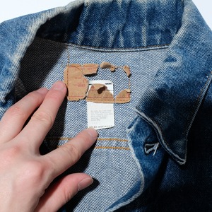 【状態】全体的に着用感、スレ、フェード。パッチ割れ、首元若干のスレ、フロントに若干のキズがございますが、デニムジャケットとしては色残りもあり、大きなダメージやヨゴレなどもなく良い状態です。