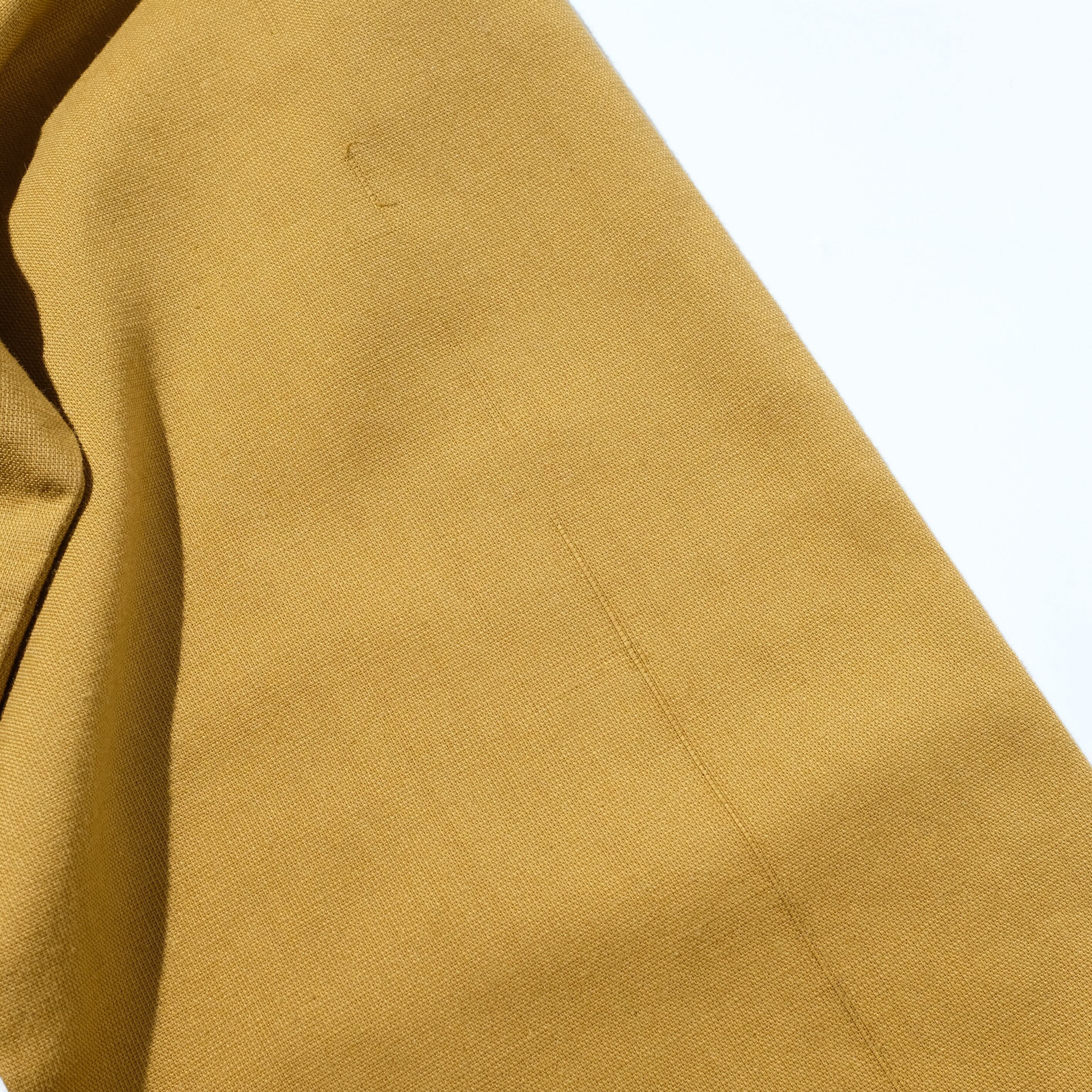 ポリコットンのシワになりづらいPERMANENT PRESSの加工がされた一枚。若干のキズなどございますがワークシャツとしては着用感も少ない方かと思われます。やはりこの年代特有の襟の大きさがいいですね。中にスウェットやフーディなどを仕込んでワーク臭くなりすぎないコーディネートがオススメです。是非ご検討ください。