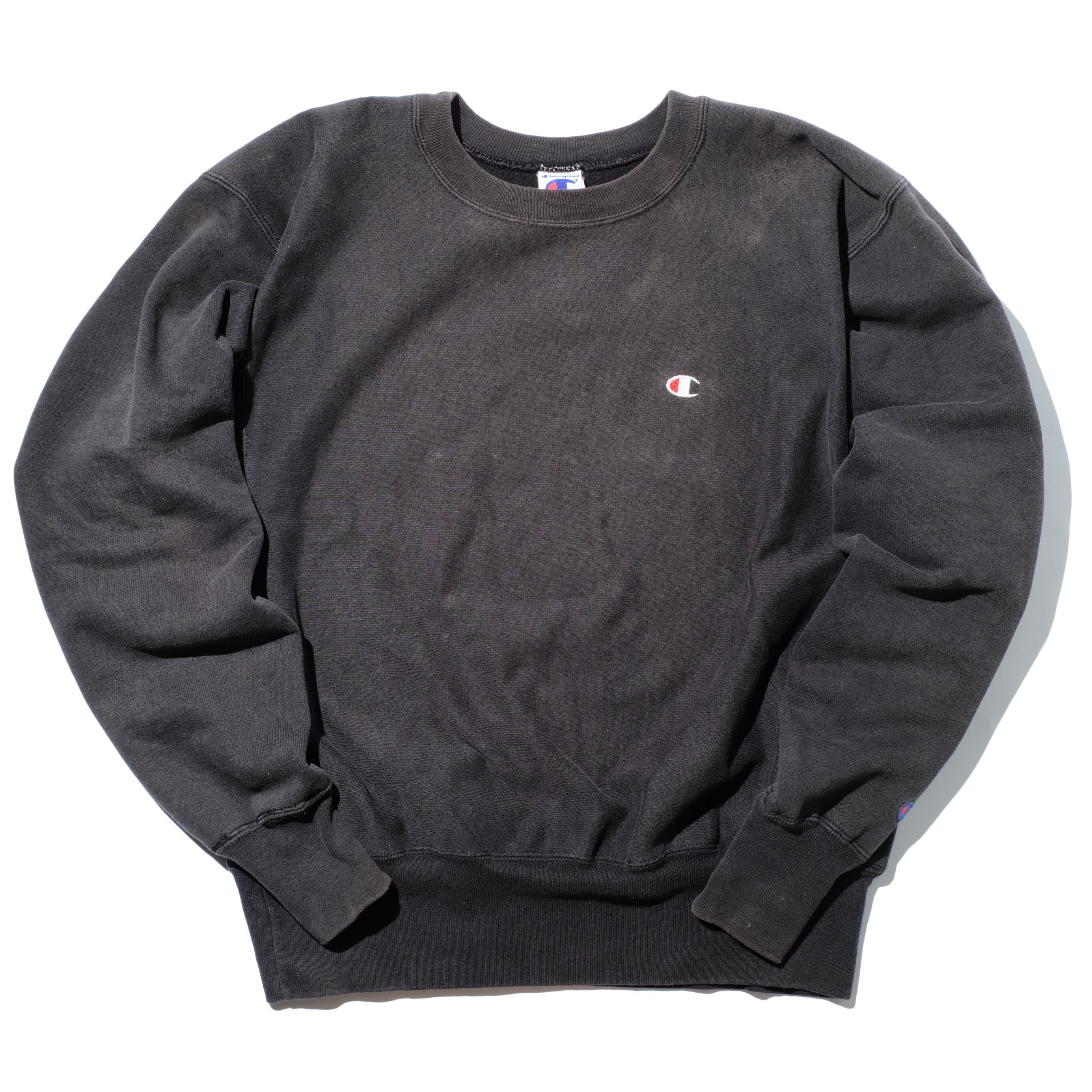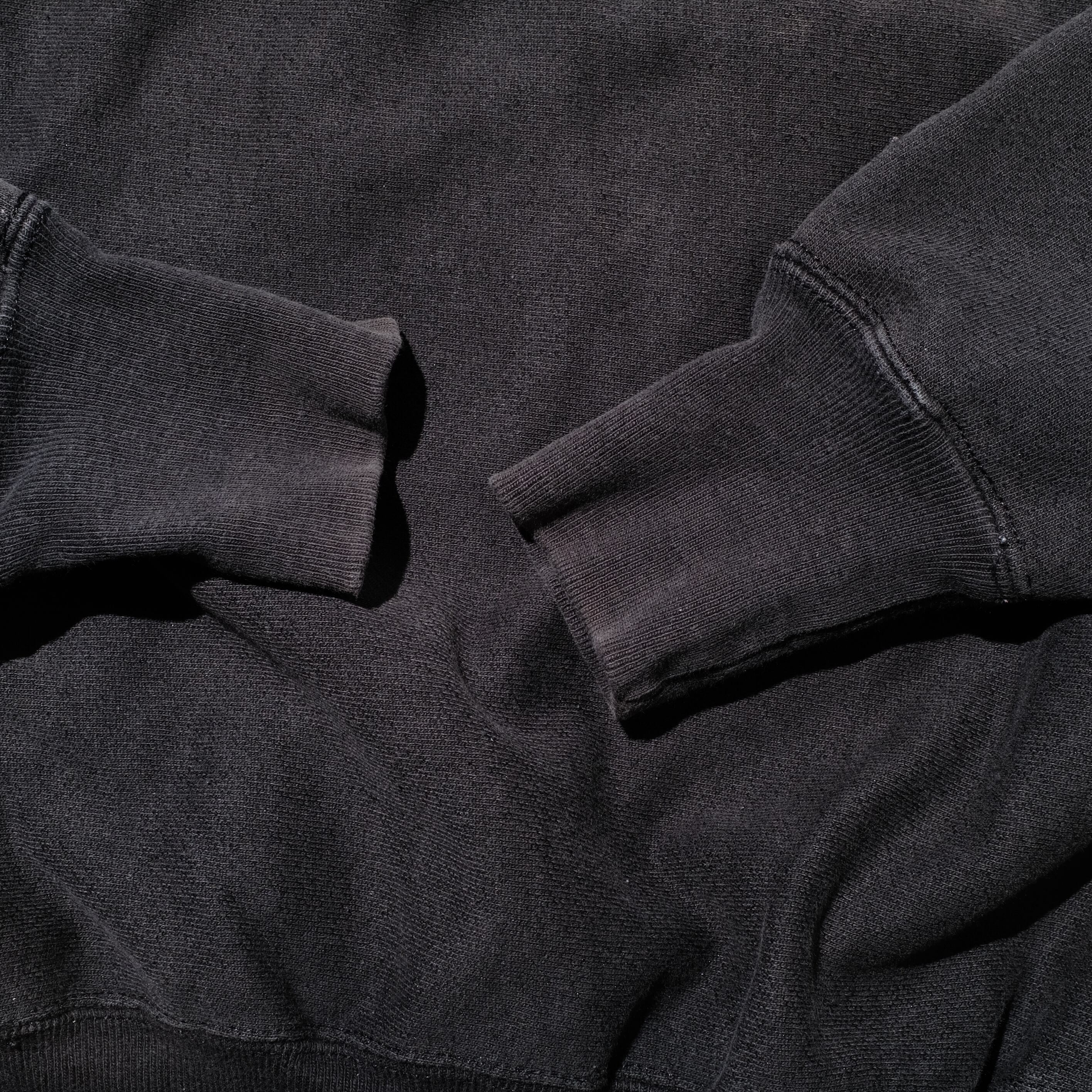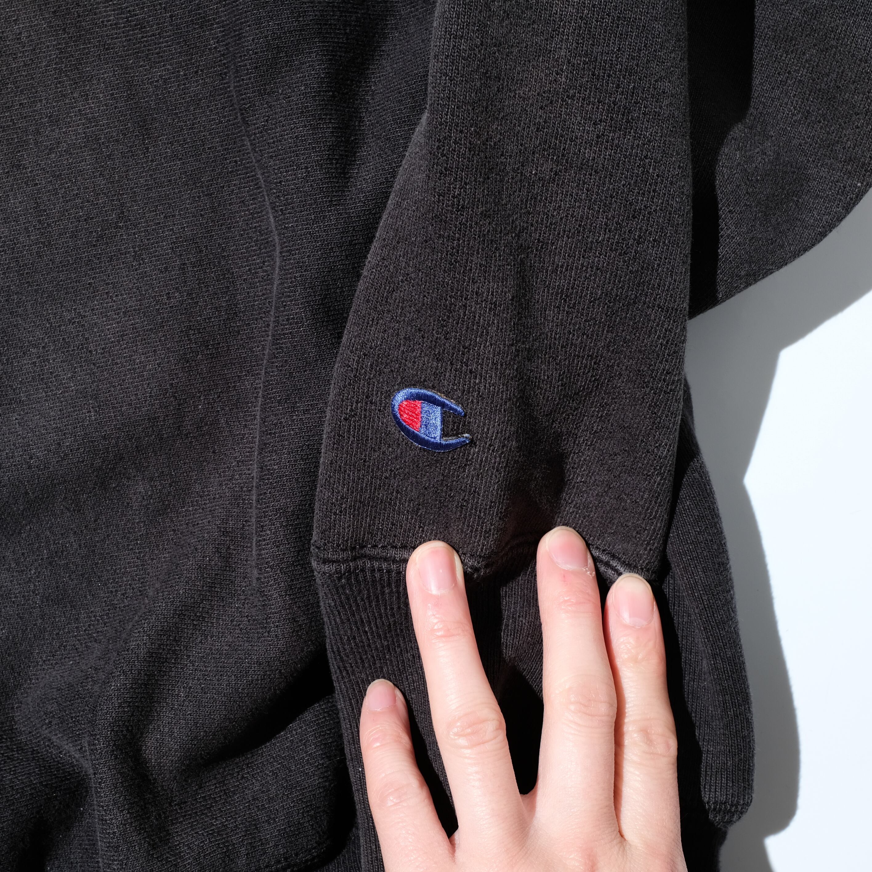 トリコタグ、刺繍タグと続きその直後のこちらのタグ。やはりこの後の年代からデザインや生地感などが大きく変わってしまう印象です。これ以前の年代のブラックカラーであれば、その希少性からやはり袖リブのダメージなど気を遣ってしまうものです。まだプライスも抑えめなこの年代のものであれば、日常にも違和感なく馴染むことでしょう。やはり結局一枚でも、レイヤードでも合わせやすいチャンピオンリバースウィーブの"ブラック”。ぜひご検討ください。