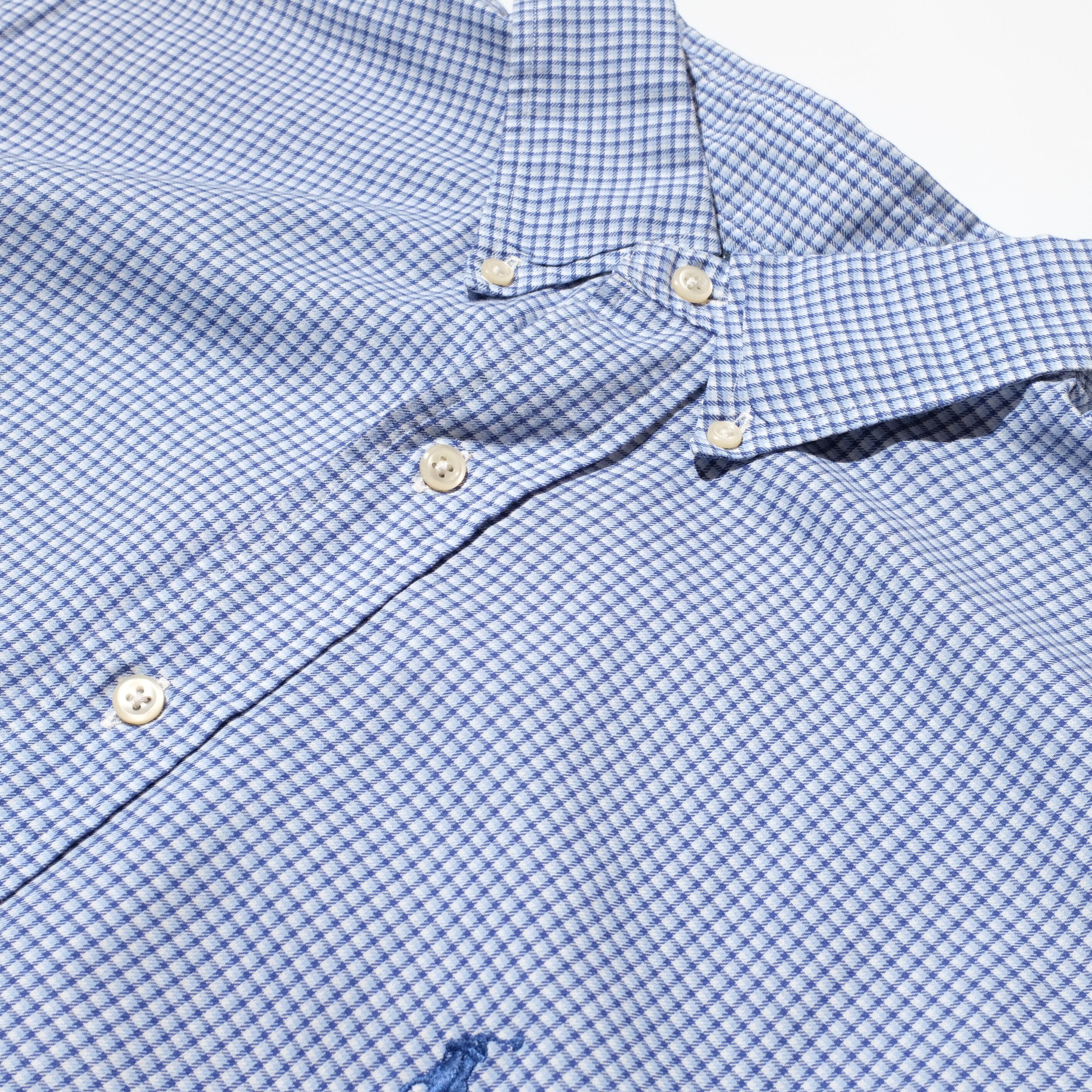 ブルーベースの細かいチェック柄に、馴染んだ同じくブルーのポニーが好印象の一枚。USサイズで16hですから、作り的にも日本での一般的なL程度のサイズ感です。薄手ながらもしっかりした生地感、これからの季節に袖をロールアップしても着ていただきたいですね。クラシカルな広めの身幅がどんなスタイルにもマッチしてくれそうです。