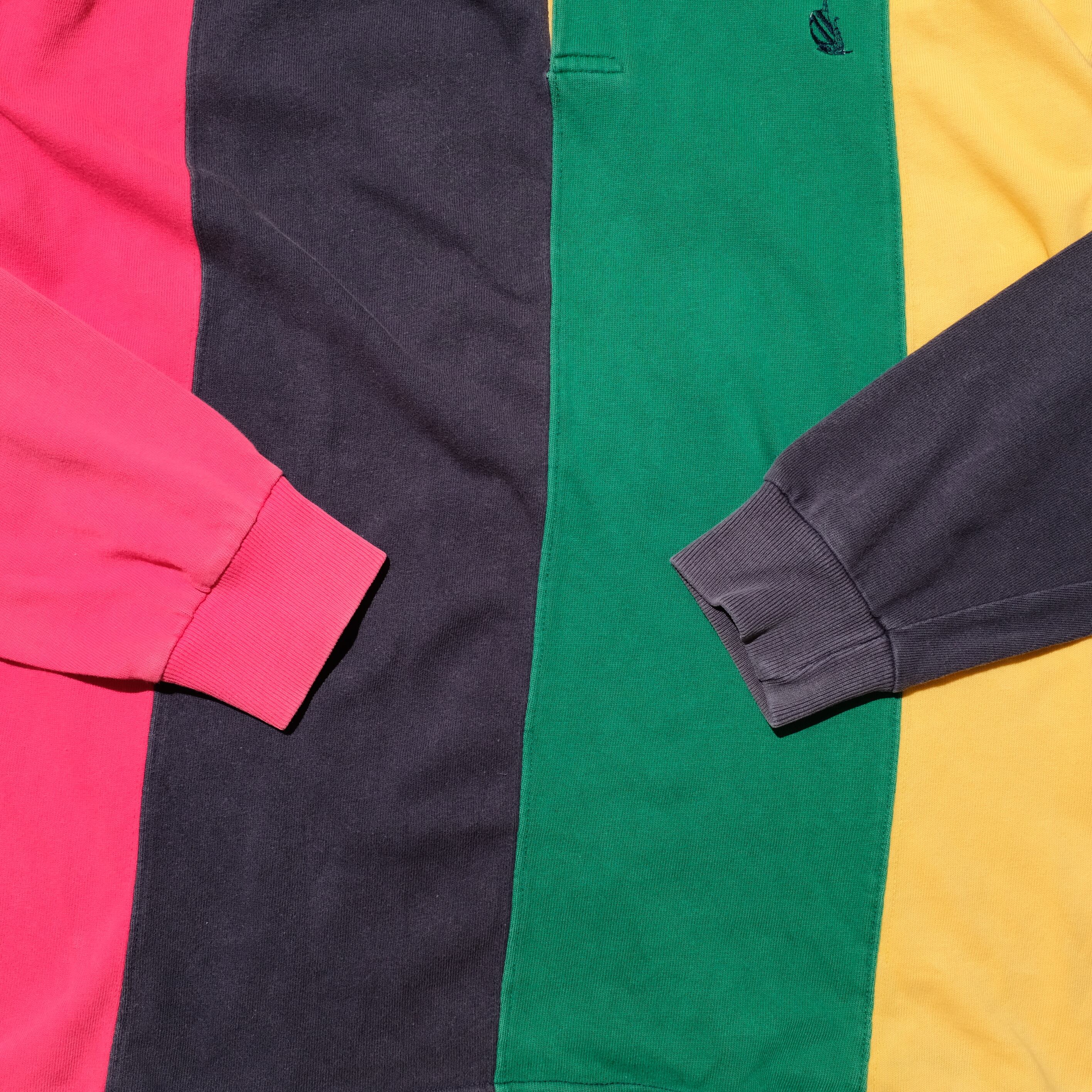 襟はデニム、そしてボディは4種類のカラーの生地をつなぎ合わせて作られた一枚。この年代、このブランドらしい贅沢なデザインですね。こういったものを見かけるのも古着ならではと言えるでしょうか。スラックスやスタプレなどと合わせていただきたいですね。ぜひご検討ください。