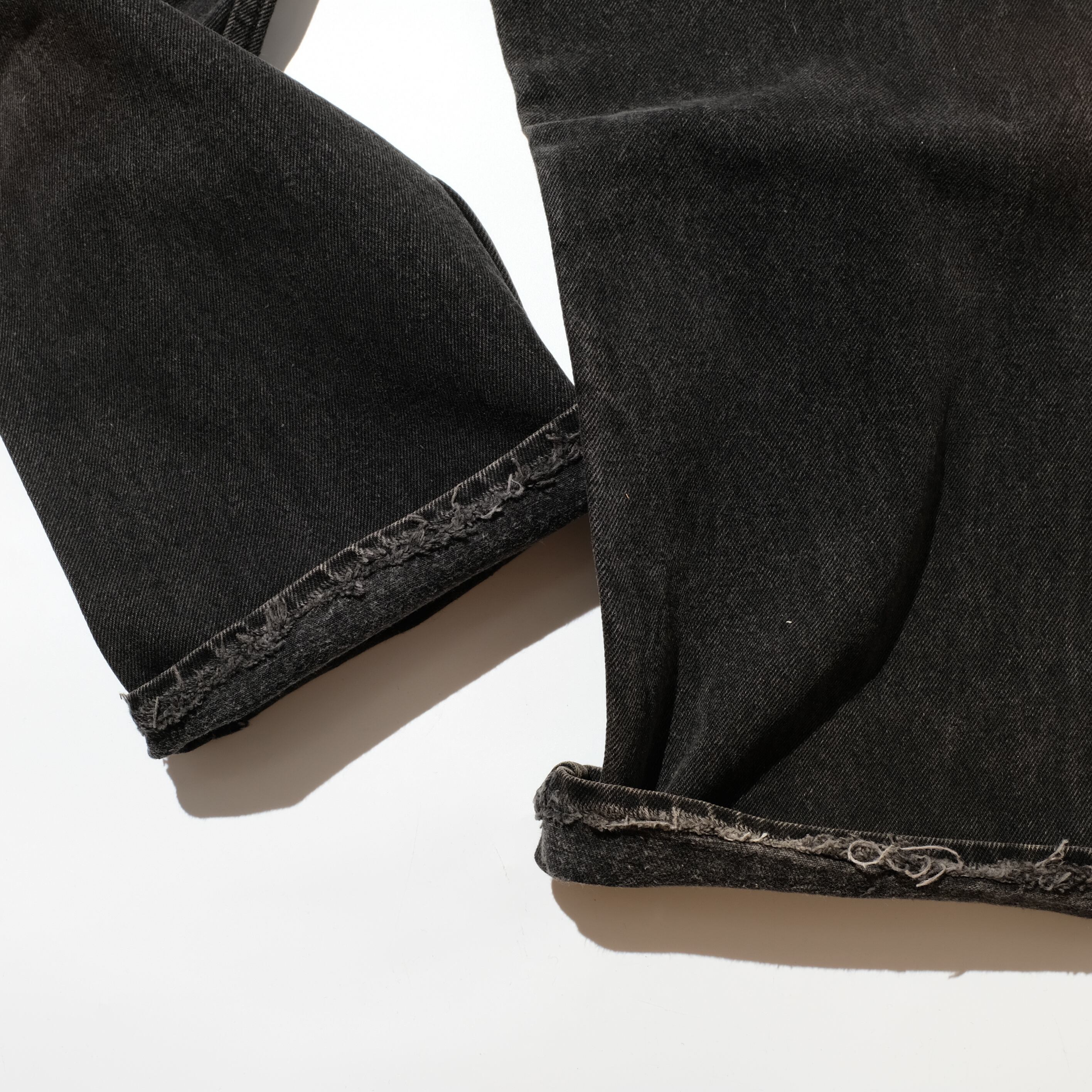 ブラックのカラーが色濃く残るこちらの個体。やはりこの年代のリーバイスのブラックデニムは一本持っておくと本当に重宝します。またW36ですのでやはりサイズアップして穿いていただくには最高のサイズですね。若干イレギュラーな裾上げこそございますが着用に支障はないですし、実寸でL26のサイズもジャストの丈感で穿かれたい方には良いサイズではないでしょうか。貴重な90's Levi'sのブラックデニム、是非ご検討ください。