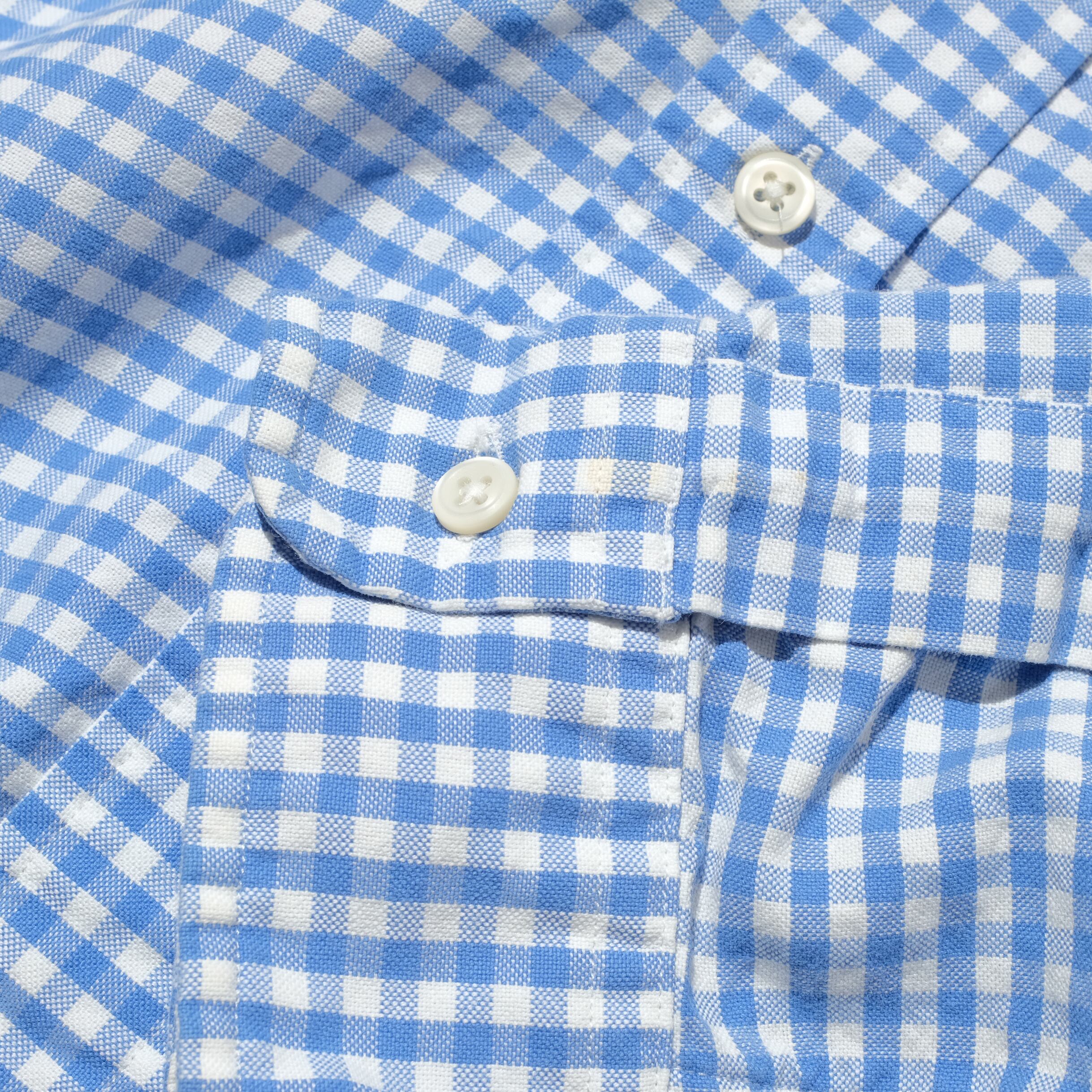 水色×白のチェックがコーディネートに清涼感を与えてくれそうな一枚。こういったある種スタンダードなチェックシャツは一枚持っておくと重宝していただけるのではないでしょうか。表記でM、カスタムフィットのサイズですので日本における一般的なM程度のサイズ感。