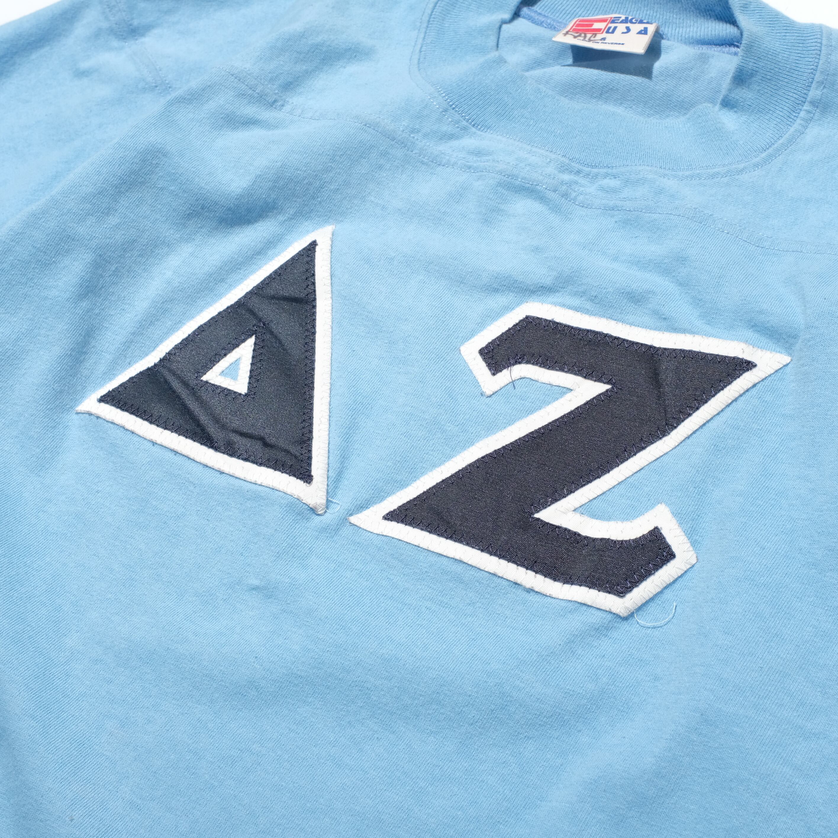 "全て"という意味を表すAZ(A~Zまでという意)のワッペンがあしらわれたこちらのフットボールT。このワッペンはリバースウィーブなどでも見かけたことのある方もいらっしゃるでしょうか。やはり目を惹くのはサックスブルーのボディに袖にネイビーを配色したグッドデザインです。表記SのサイズですのでリンガーTなどのようにジャストで着ていただきたい一枚。