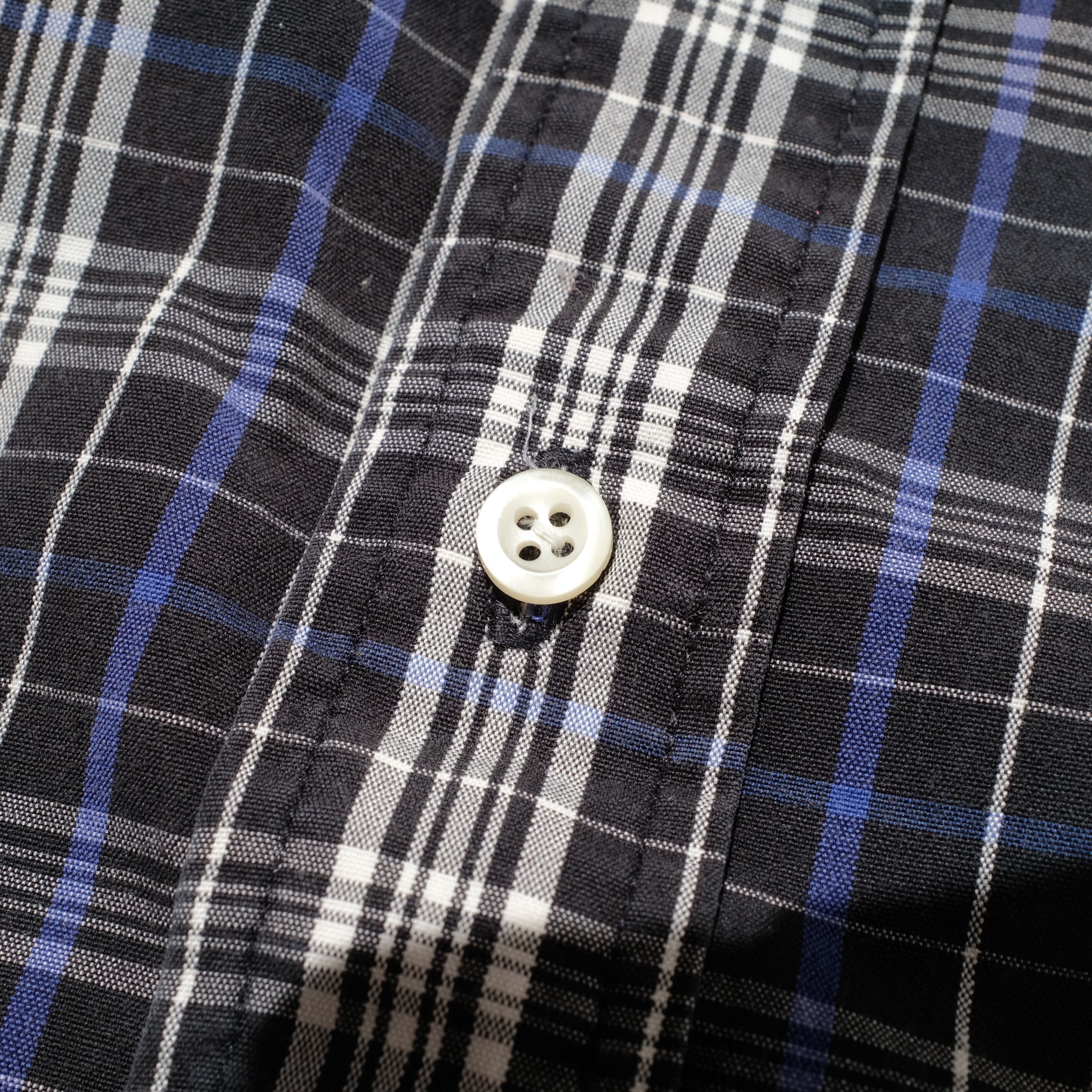 オーセンティックなシルエットが特徴的なBLAIREのモデル。なかでもブラックベースのチェック柄はやはりコーディネートを締めてくれる貴重な存在です。表記でSサイズですので一般的なMに近い多くの方に楽しんでいただけるサイズ感。プレーンな印象になりがちな夏に重宝するであろう一枚、是非ご検討ください。