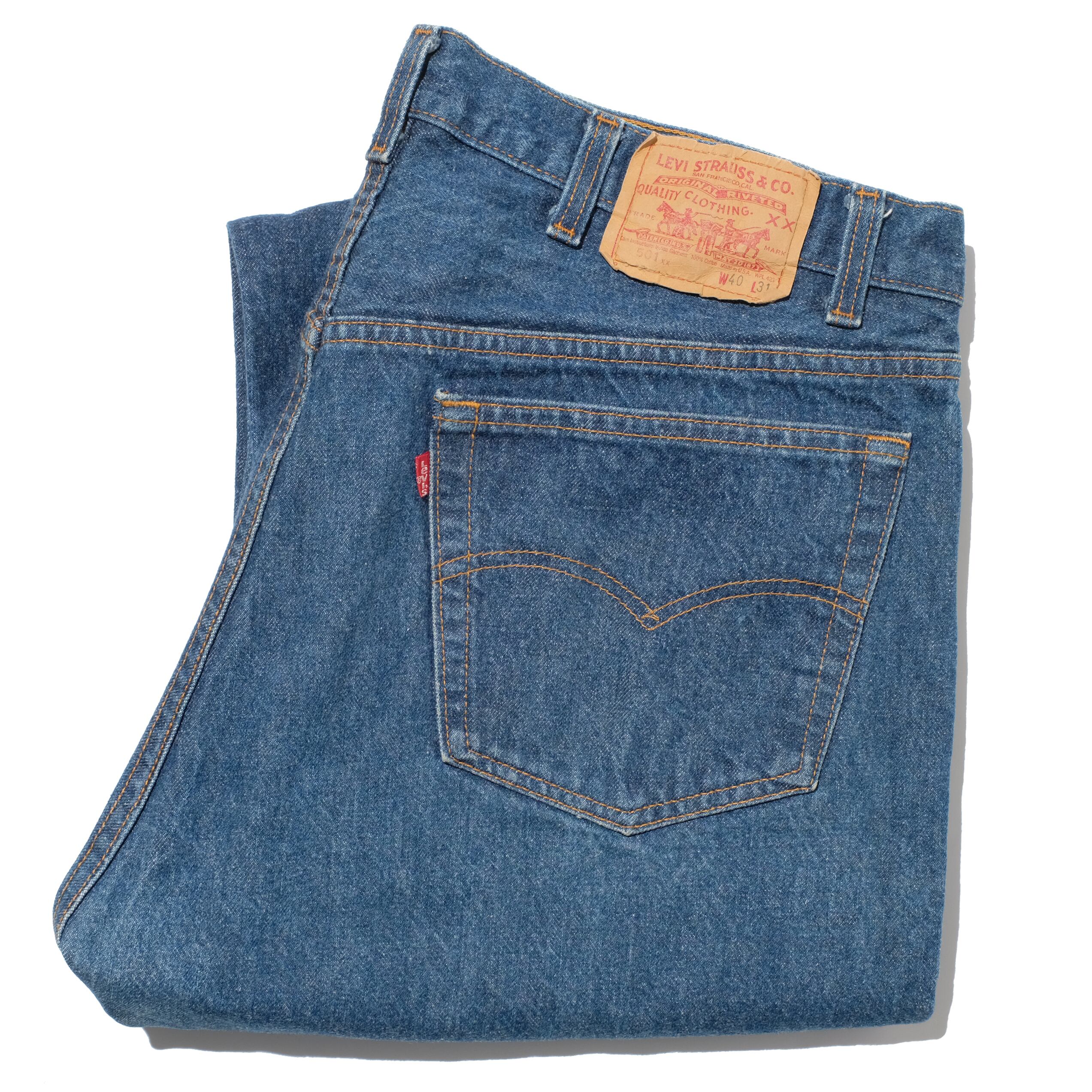全体的にインディゴの色の残った風合いが素晴らしい一本。表記で40×31から縮みが入り、実寸で38×29となった501は、オーバーサイズがトレンドの昨今では重宝するサイズ感ではないでしょうか。80'sのインディゴの色はやはりこの後の年代にくらべ青みの強いオールド感のあるカラー。色の濃さといった条件に表記でウエストは大きくレングス短めという条件が重なる一本もそうそうないのではないでしょうか。