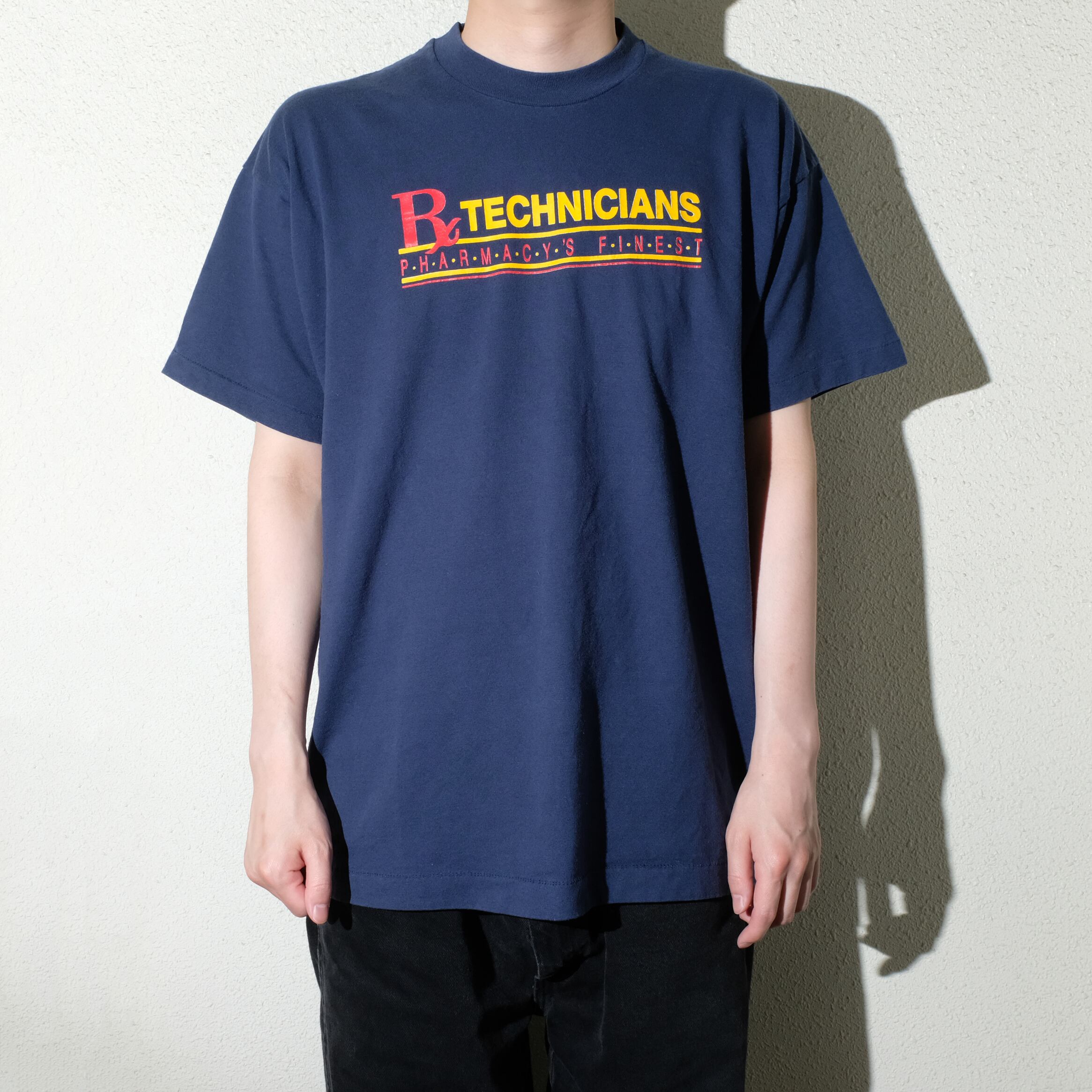 こちらはコットン100%ではなくポリコットン混紡の一枚。やはりこの年代らしい風合いが魅力的です。生地感もテロテロとした感じになっておらず、ガシガシ着ていただけます。胸元にシンプルなプリント、そしてネイビーボディの重宝しそうなこちら。USA製にこだわりのある方、是非ご検討ください。