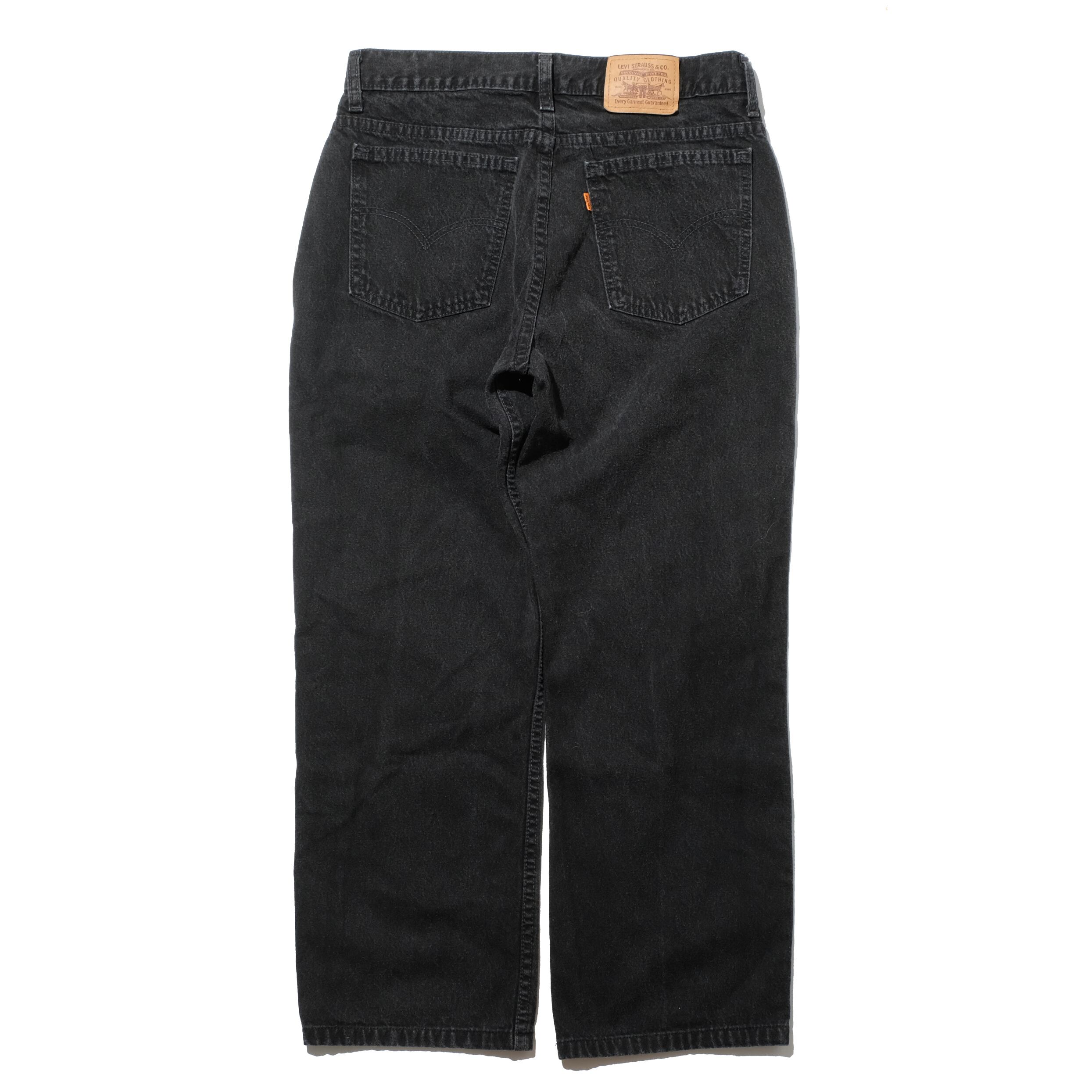 90'sのものと思われる紙パッチ、オレンジタブのつく一本。太めのストレートシルエットにライトオンスのブラックデニムのパンツになります。