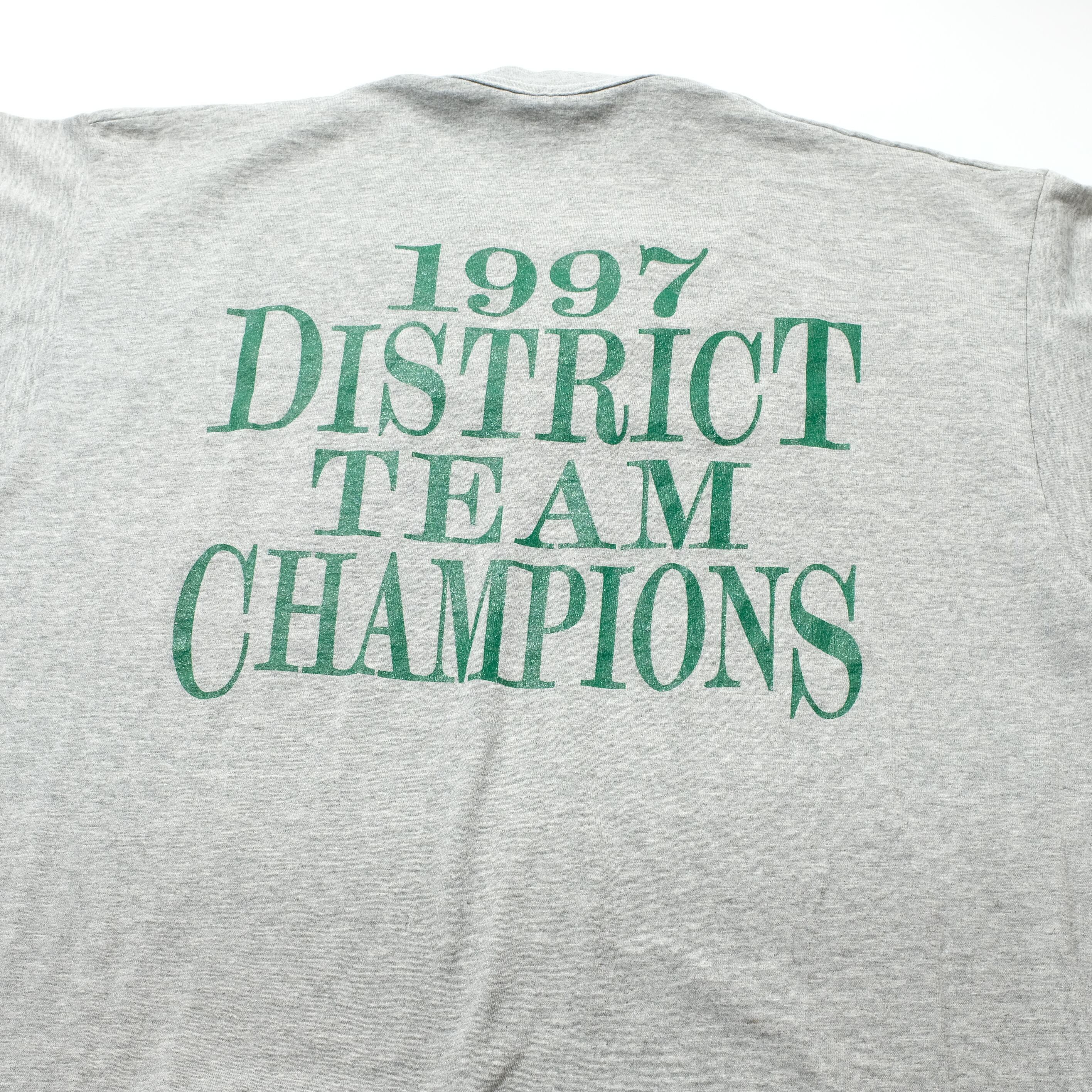 人気のレスリングモチーフの両面プリントの入る一枚。グレーボディにグリーンのプリント、お好きな方も多いバランスではないでしょうか。レスリング関係者用と推定されることもあり、サイズはXL。ゆとりを持って着ていただけるいいサイズです。是非ご検討ください。