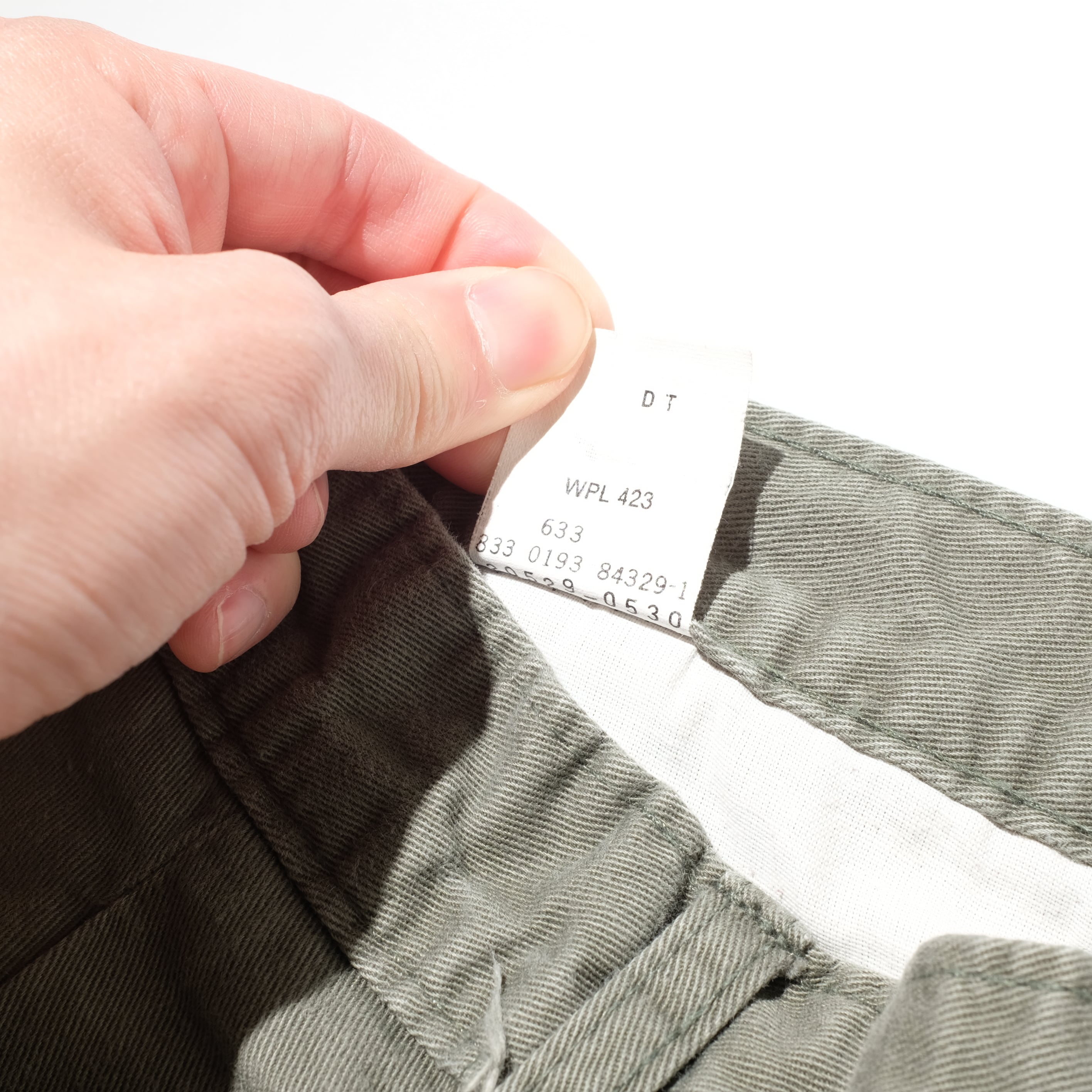 93年の1月製と普段見かけるドッカーズの中では比較的古い年代の一本。ドッカーズのロゴのパッチも古いものになります。これ以降の年代のものに比べても生地感の風合いなどもよく、チノパンとしてのクオリティが純粋に高いなと思わされます。カラーもオリーブ、サイズも実寸で33.5×29と多くの方に楽しんでいただけるサイズ感。同ブランドのパンツや2タックチノを探されていた方にはぜひおすすめしたい一本です。
