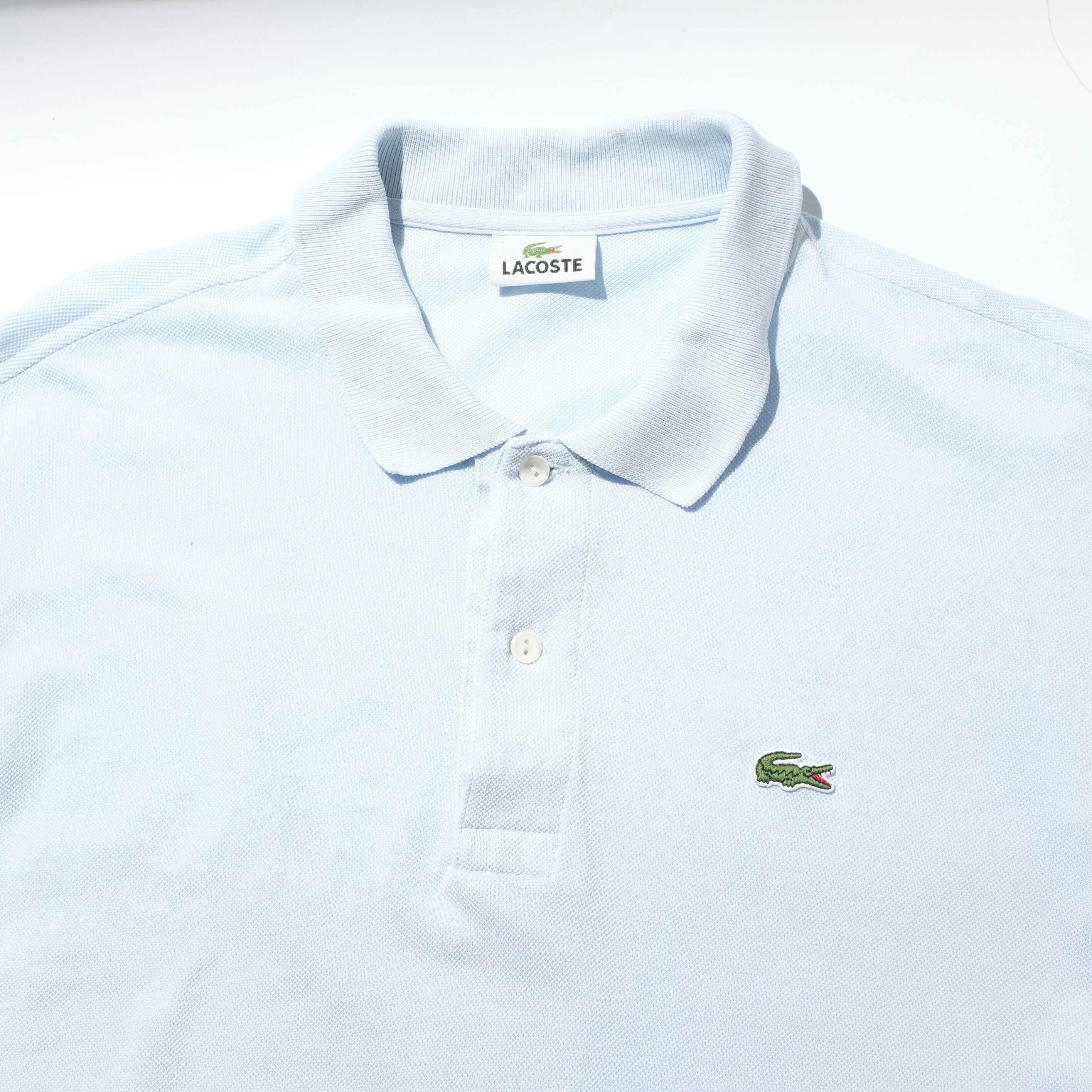 定番中の定番、ラコステのポロ。こちらは本国フランスのDEVANLAY社企画のものになります。サックスというカラーもいいですし、表記で4(Mサイズ相当)のサイズは多くの方にハマるはずです。大きめに着られる方も、このサイズだとジャストめになる方もどちらの着こなしでも使えるいい一枚です。