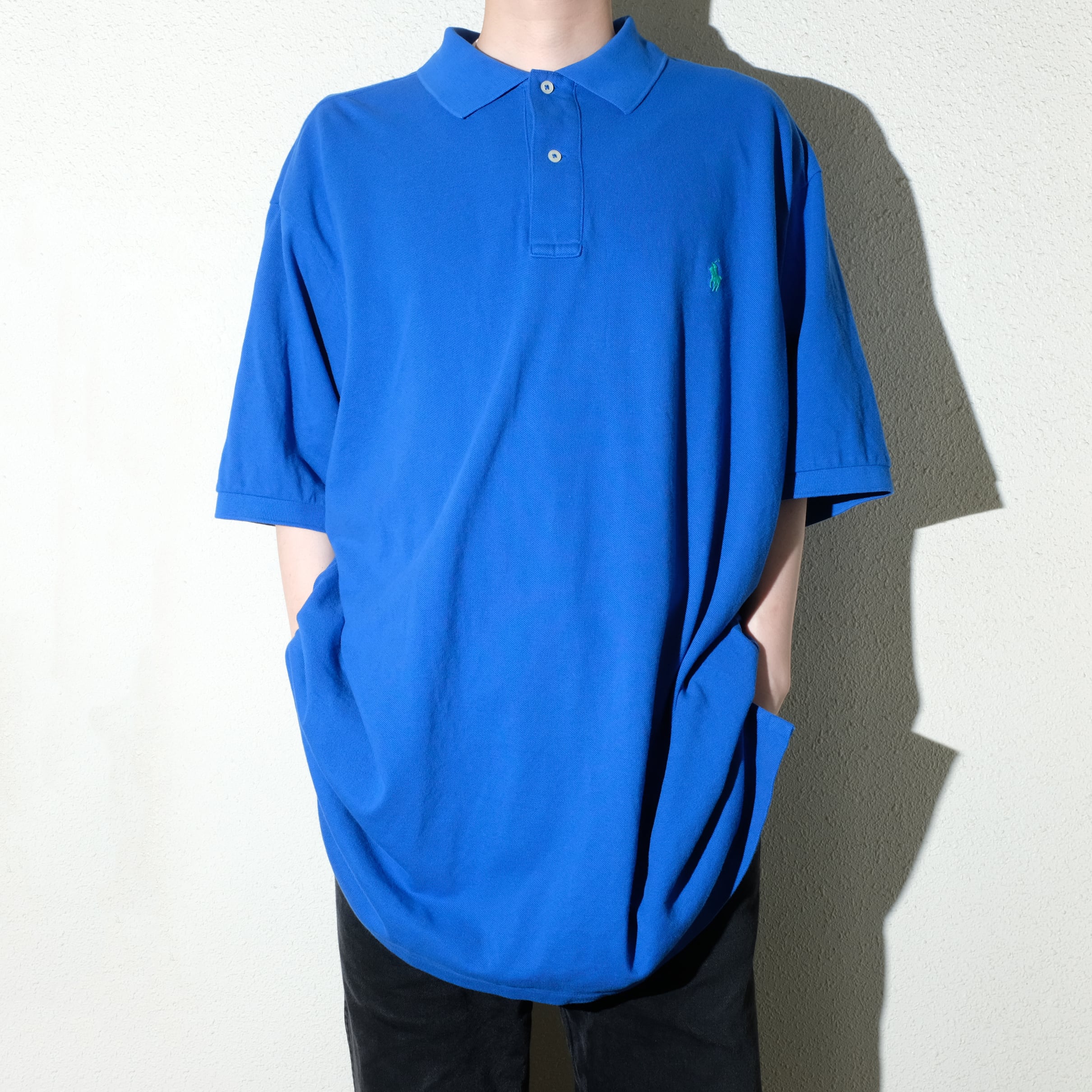 poloの中でも定番の商品、鹿の子のポロシャツ。ボタンダウンと並ぶ永遠のクラシックアイテムです。こちらは比較的新しい年代の一枚ですが、特筆すべきはそのサイズ。2XLTという特大サイズです。実寸的にも他の2XLに比べ大きいですのでゆったりと着たい方や身長の高い方には絶好の一枚。夏にぴったりなブルーボディですし、何より年代も新しい分状態もいいという点もオススメす。是非ご検討ください。