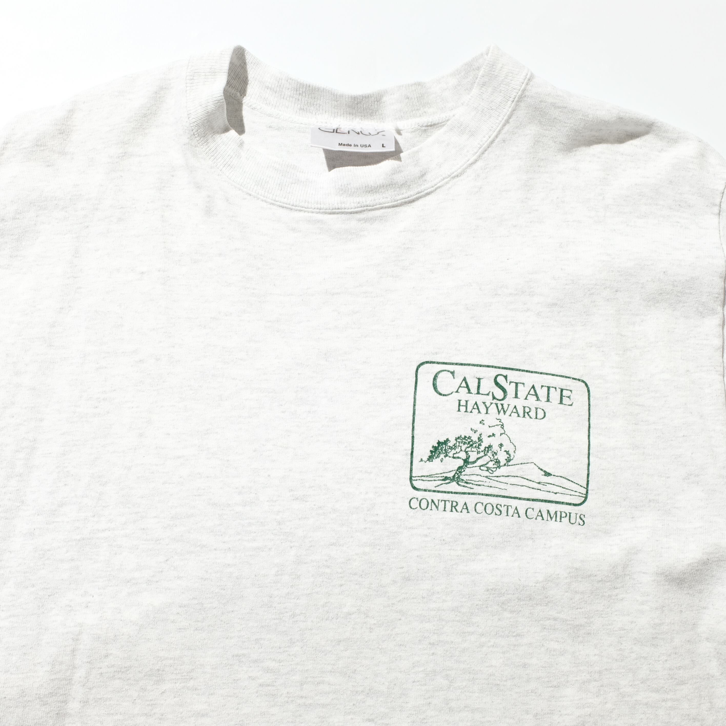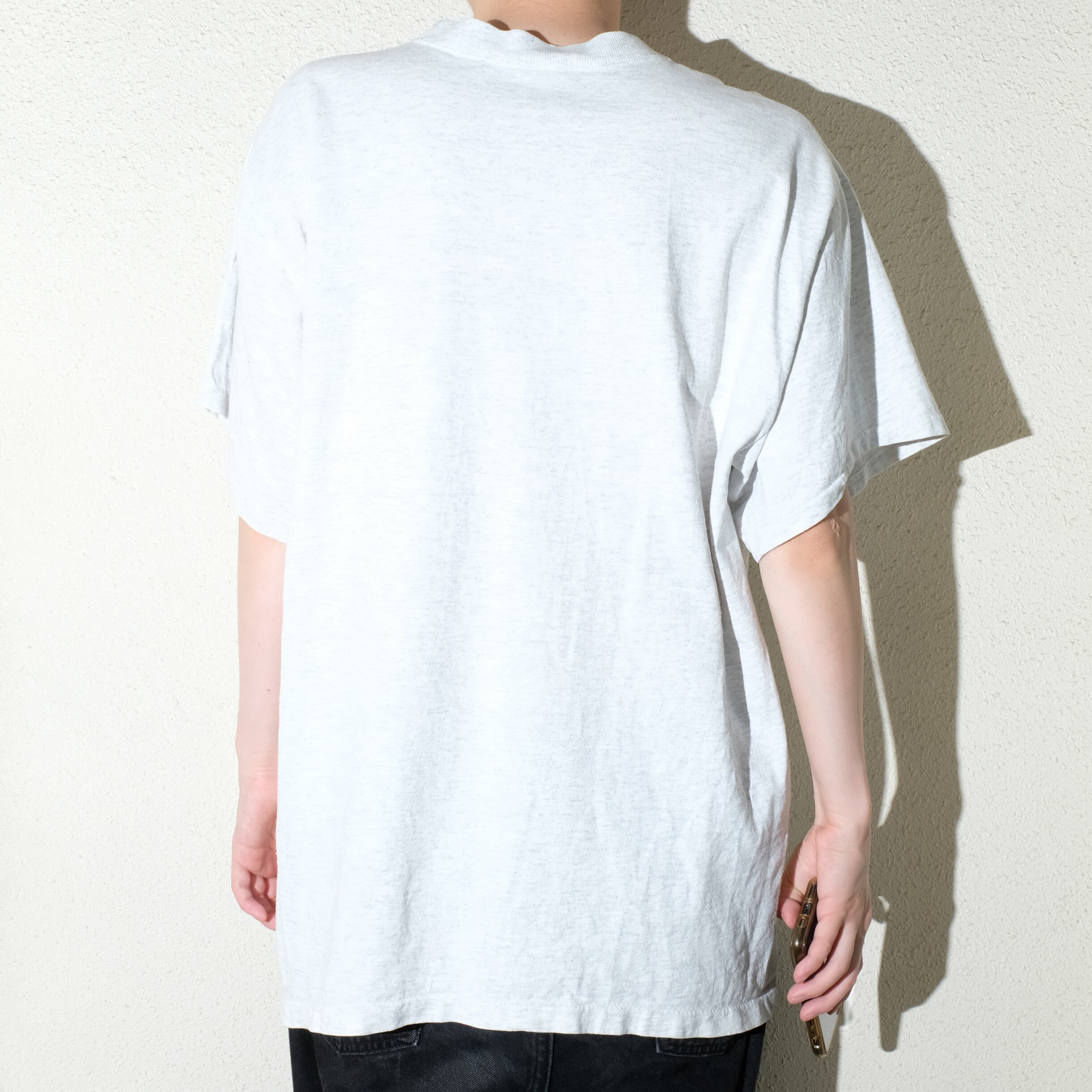 杢グレー、Lサイズの使いやすいボディに左胸にシンプルなプリントが入る、使いやすそうな一枚。シングルステッチのTシャツもどんどんタマ数が少なくなっているなか、こういった良いプリントのものはなかなかありません。一枚持っておくと重宝するデザイン、夏の相棒としてぜひご検討ください。