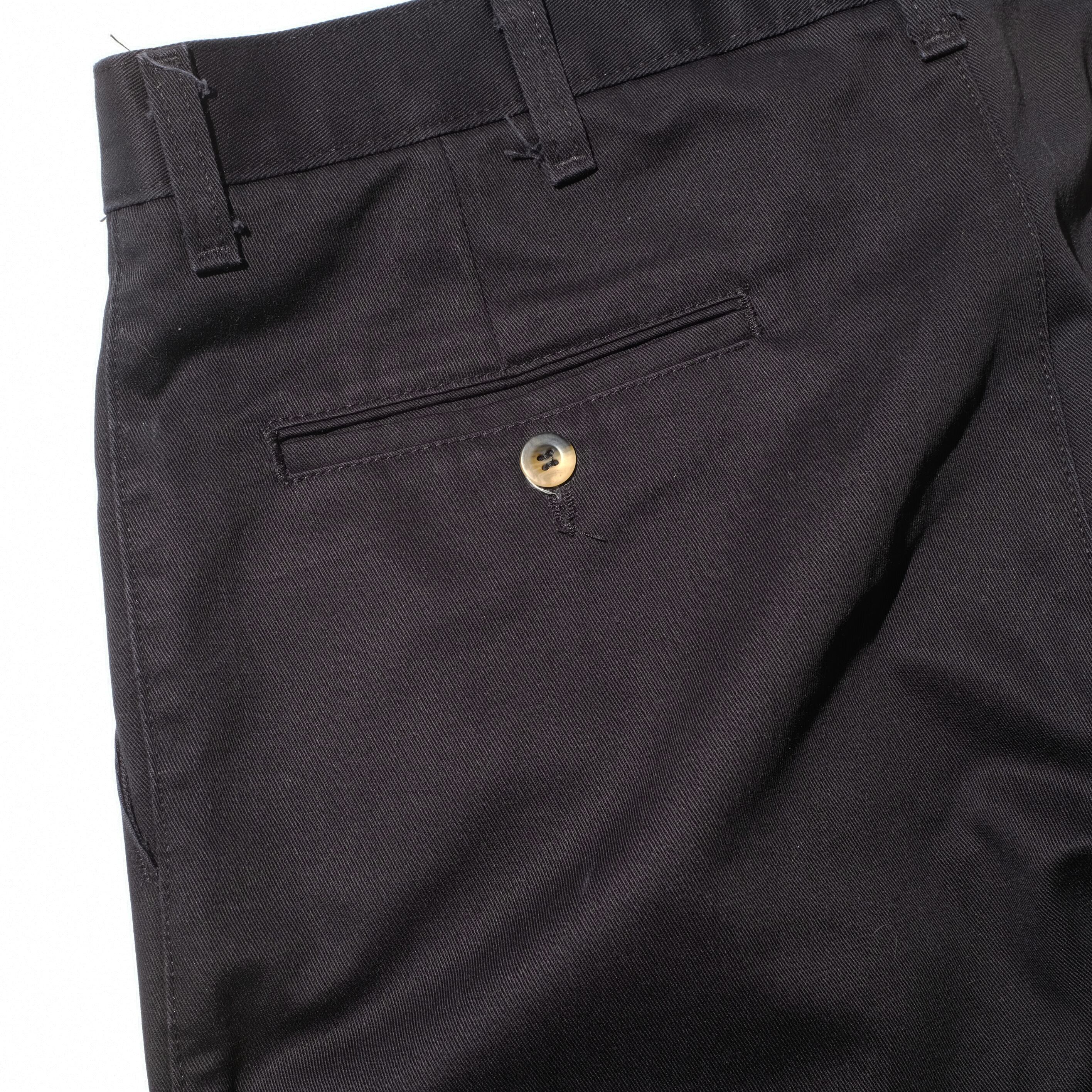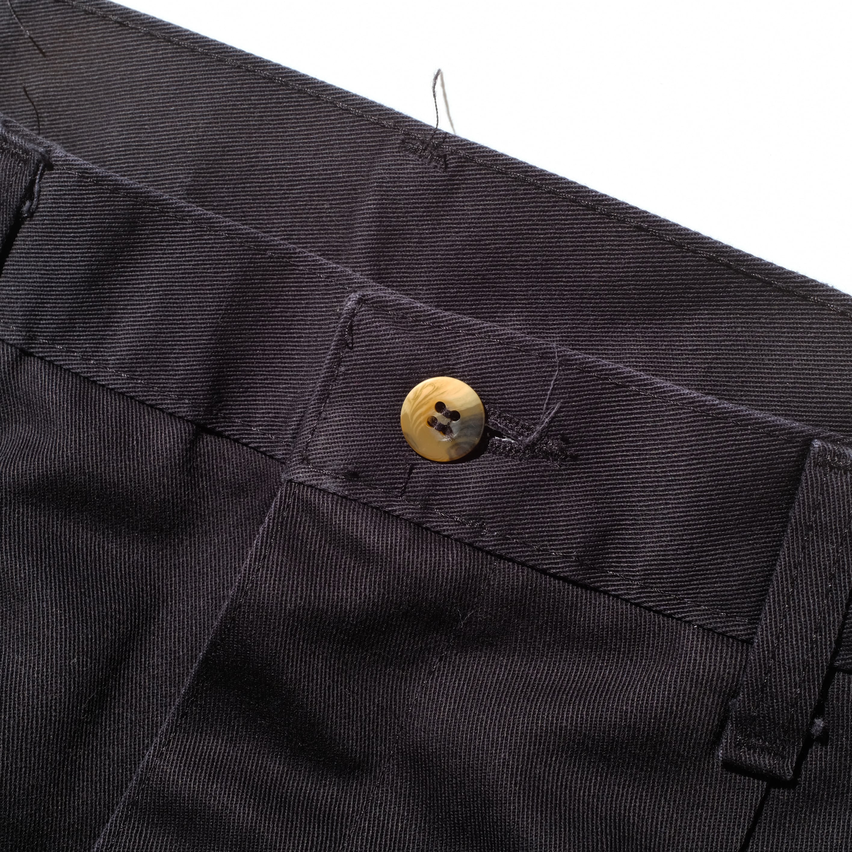 太めのシルエットに高級感のあるツイル、そしてブラックのカラーが嬉しい一本。ボタンも他のブランドでは見かけない質感です。さすがはラングラーといったところでしょうか。ワーク感も残しつつ、上品さのあるチノというのは意外と見つかりづらい印象。おすすめです。
