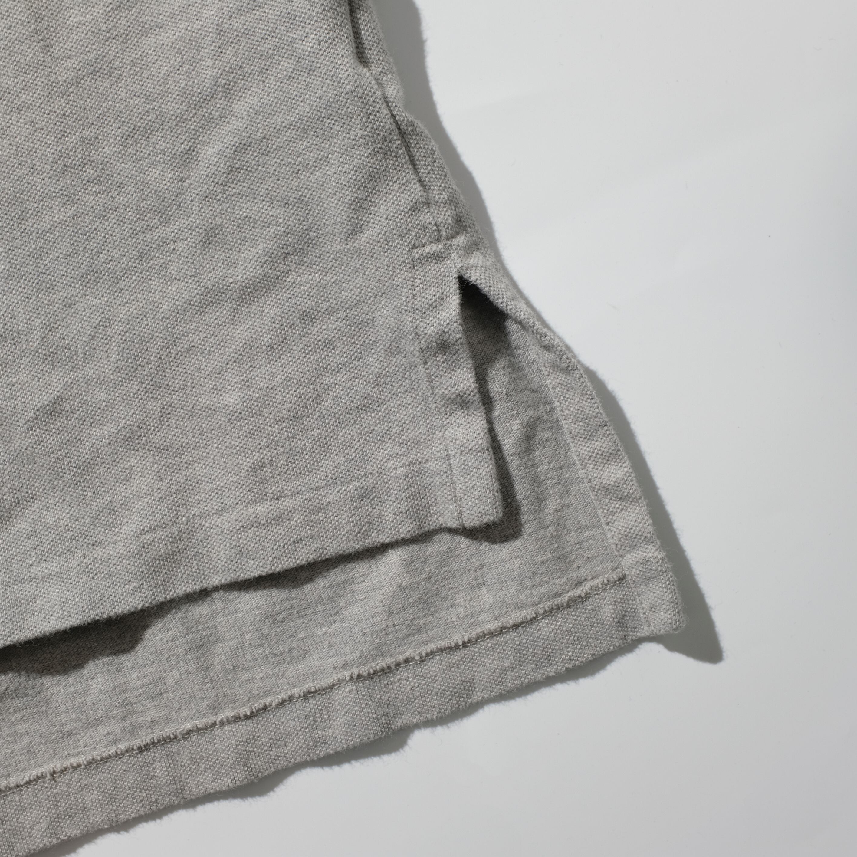 こちらは表記でXXLサイズの一枚。そしてカラーは定番のハイグレー。上品な色目がどんなシーンにも合いそうです。もう今年の夏は終わりかけですが、9月の残暑のなかではもちろん、来年も必ず着ていただける一枚です。是非ご検討ください。