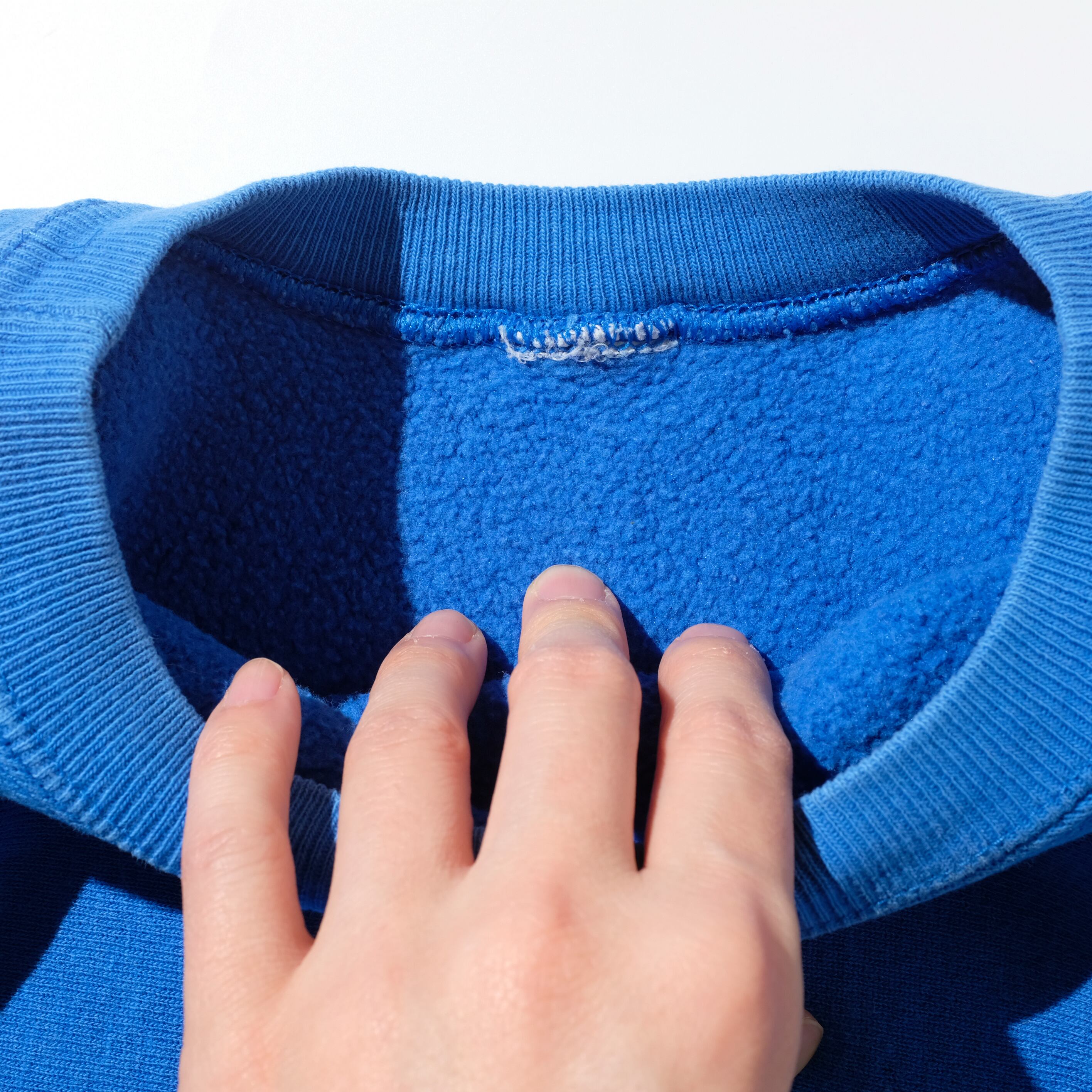 グッドコンディションかつレアカラーのブルーの一枚。実寸からXLサイズの個体かと思われます。この気持ちの良いカラーは一枚でももちろん、インナーとしても重宝していただけそうです。おすすめの一枚、ぜひご検討ください。