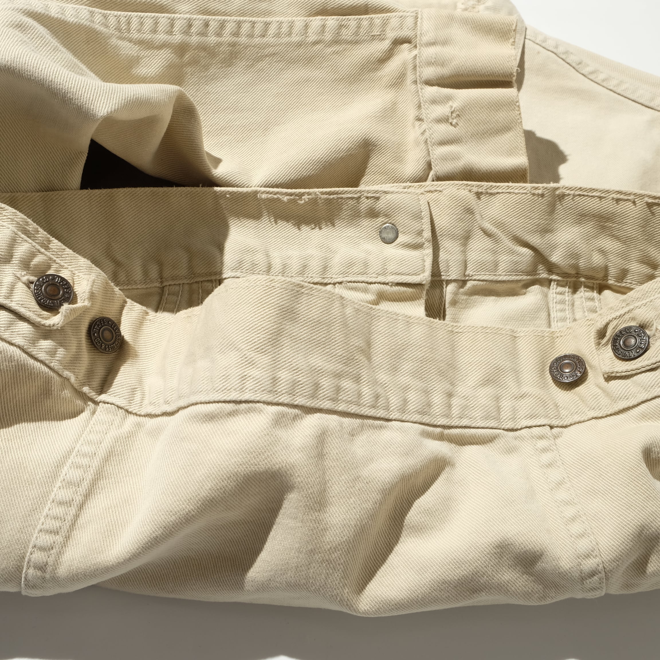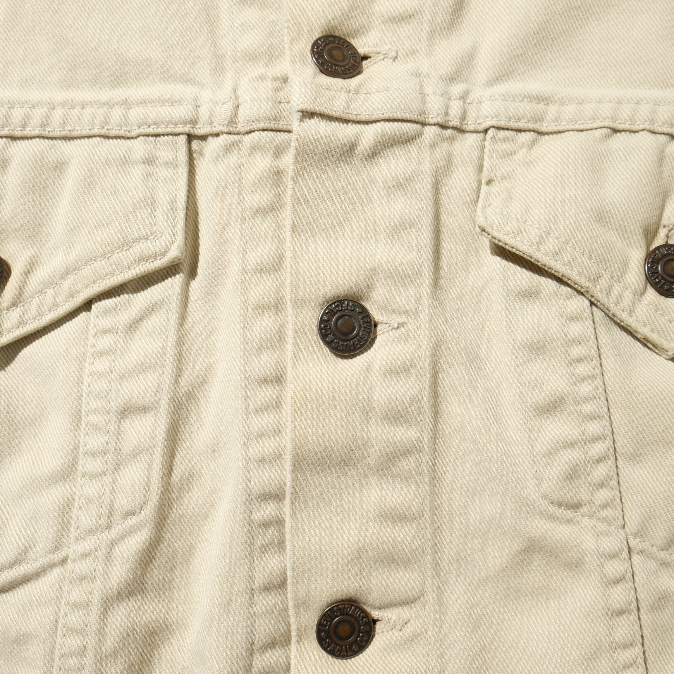 ボタン裏刻印O、XX生地の個体。個人的にも大好きな、生成りのツイルがファッション的にもカッコいいビンテージジャケットです。