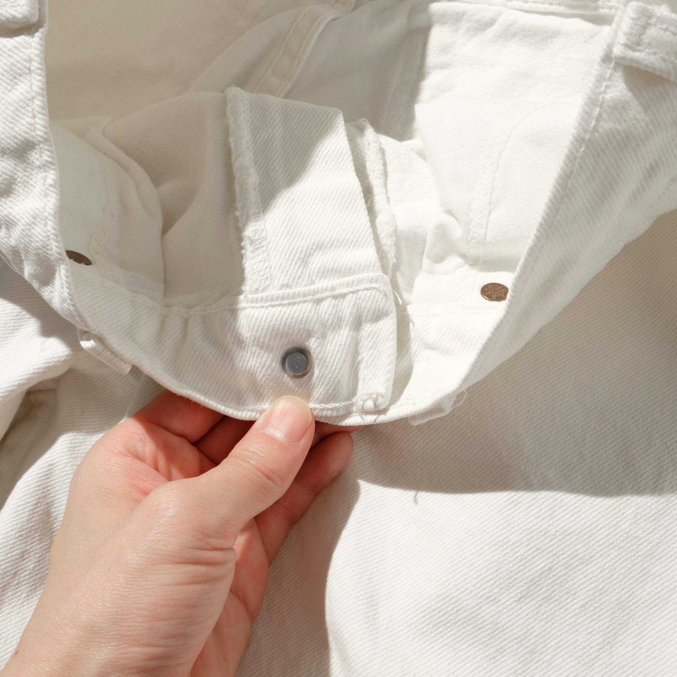 探している方の多さに供給量が伴っていない実感のあるホワイトデニム。505や501よりさらに見かけない550になります。製造年月が読み取れませんが、トップボタン裏515、センタービル工場製、オレンジタブより90'sの個体になります。