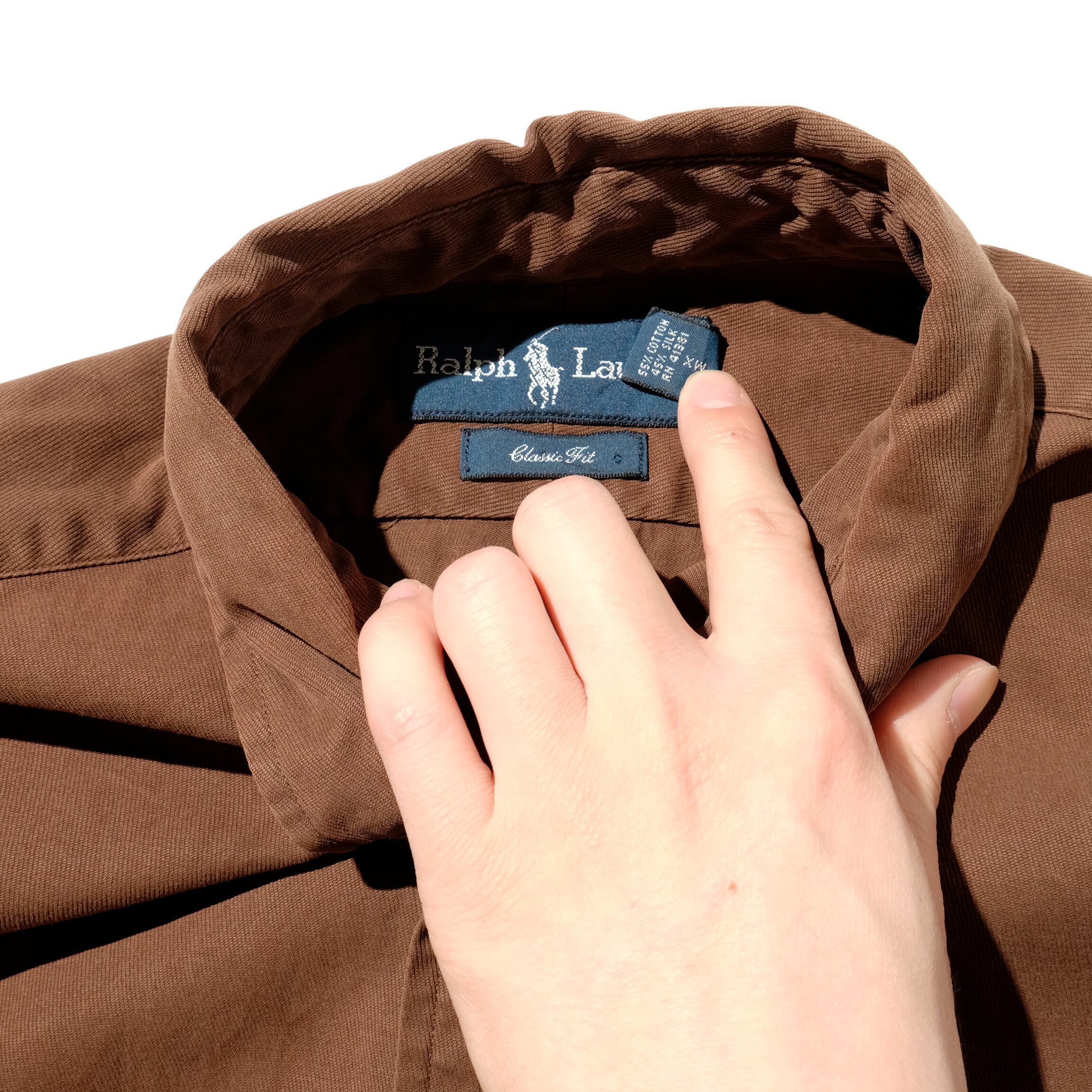 近年注目度の高まりを見せる高級素材のラルフのシャツ。やはりシルクの独特の着心地はなんともいえないものがあります。なかでもこちらはブラウン一色という良いデザインのもの。サイズがSですのでジャストで着られたい方や、カラー的にもインナーとして着られたい方におすすめの一枚です。是非ご検討ください。