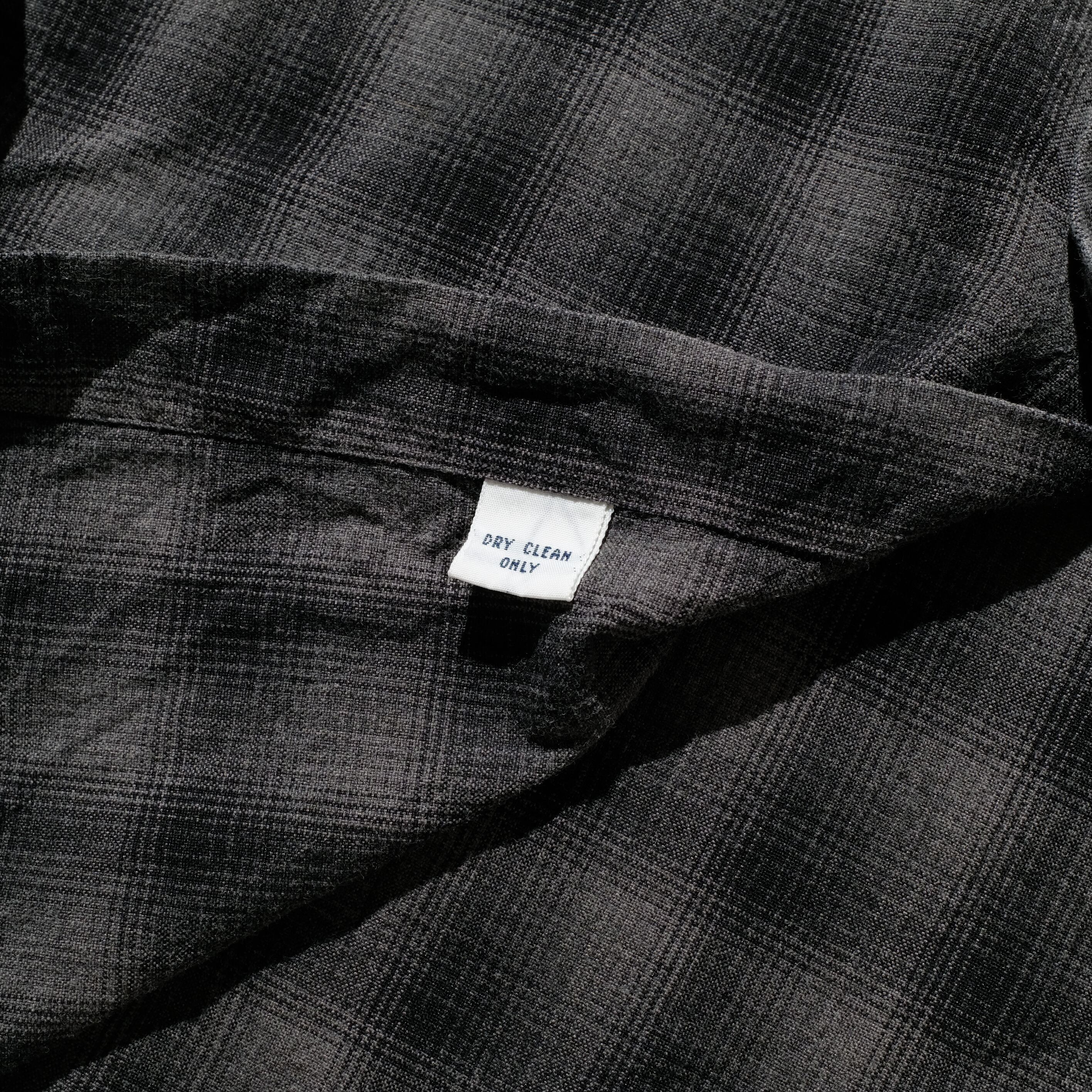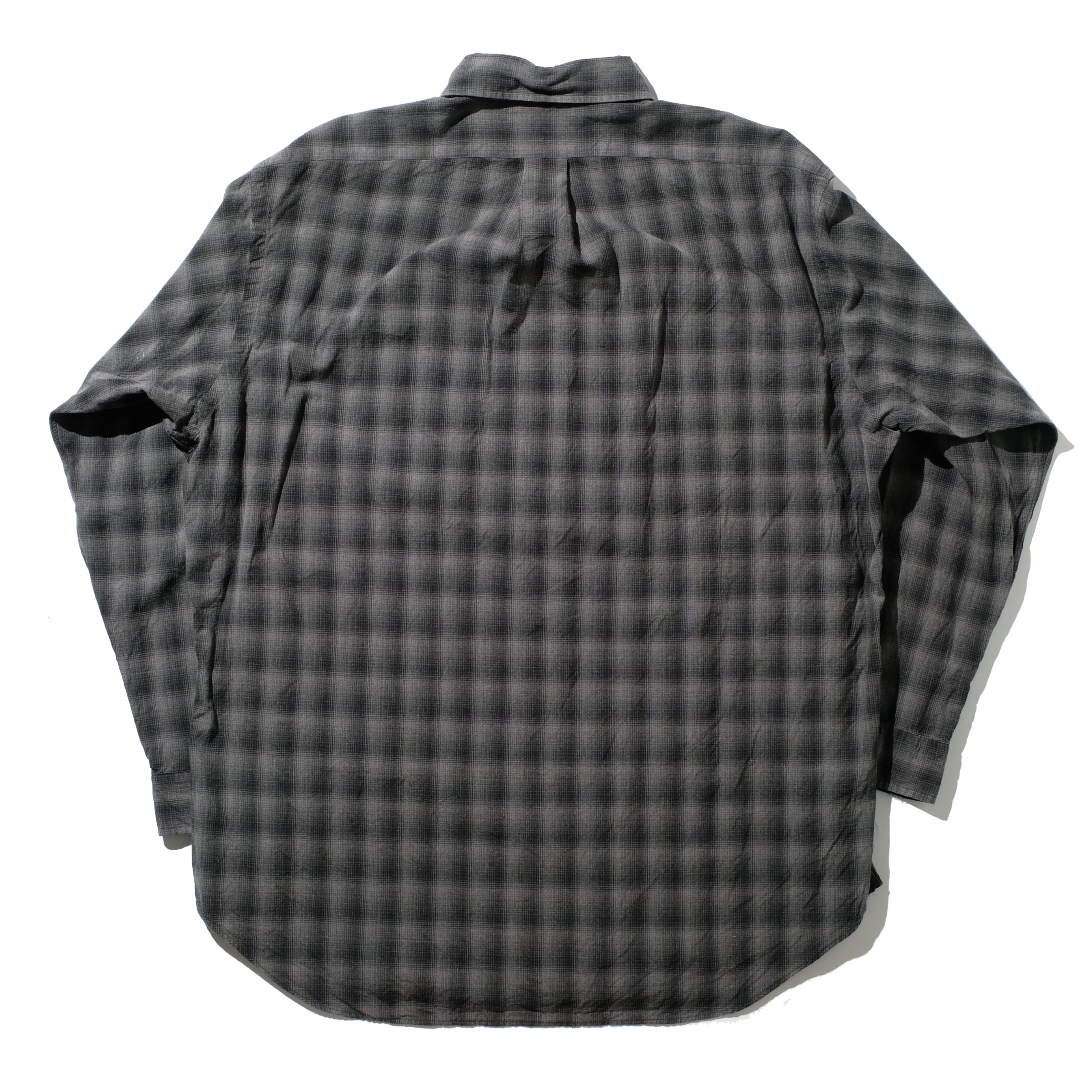 グレーにブラックのオンブレという、古着好きにはたまらない配色、柄の一枚。BKAKEのシルエットと相まって一層引き立っていますが、さらにこちらの個体は近年大注目の高級素材混紡のシャツとなっております。シルクを73%と贅沢に使用した生地ですので、着心地や風合いはコットンのものとはまるで違った質感です。