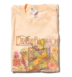 テキサスの砂漠の花が描かれた良いプリントの一枚。ボディはシルエットの良さに定評のあるAnvil、USA製の年代のものになります。ウスヨゴレなどあるコンディションですが当時の値札もつくデッドストックコンディション。プリントやカラー、サイズの良いものでデッドストックのものはなかなか見つかりません。是非ご検討ください。