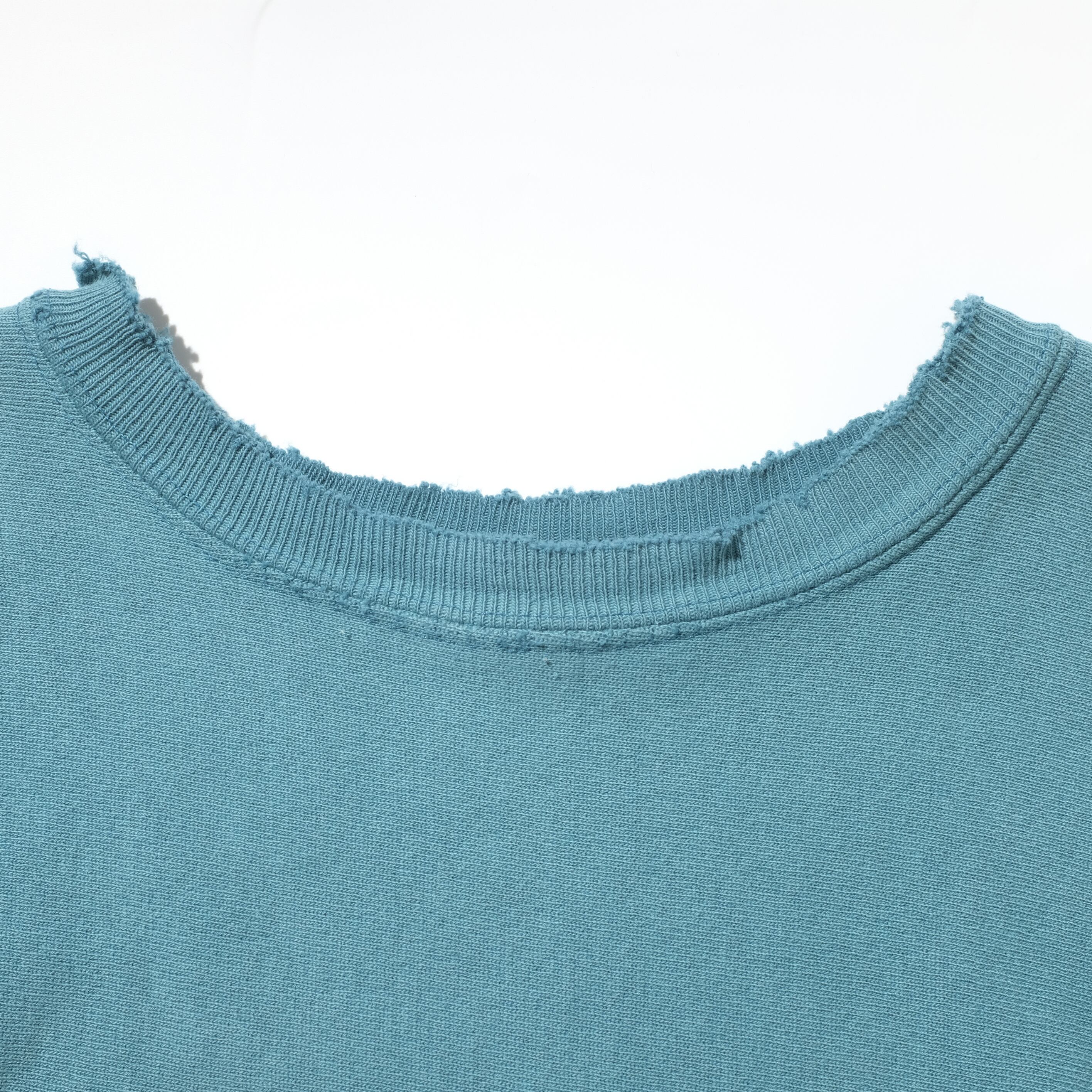 首元や袖口にダメージのある個体ですが、フェードの風合いが魅力的なチャンピオンリバースウィーブの中でも特に退色が美しいカラーかなと思います。一枚やインナーとしてはもちろん、レイヤードも楽しんでいただきたい個体です。ぜひご検討ください。