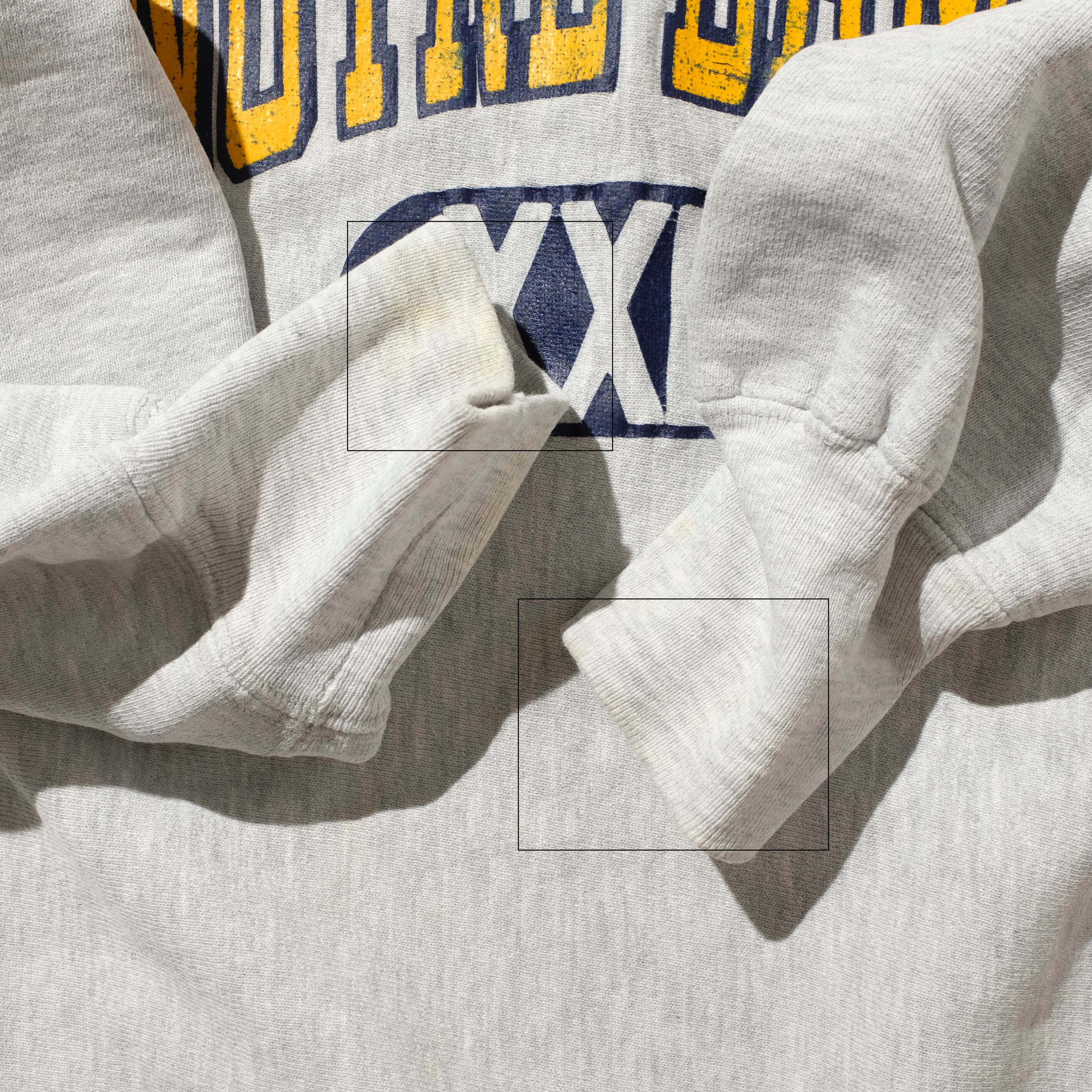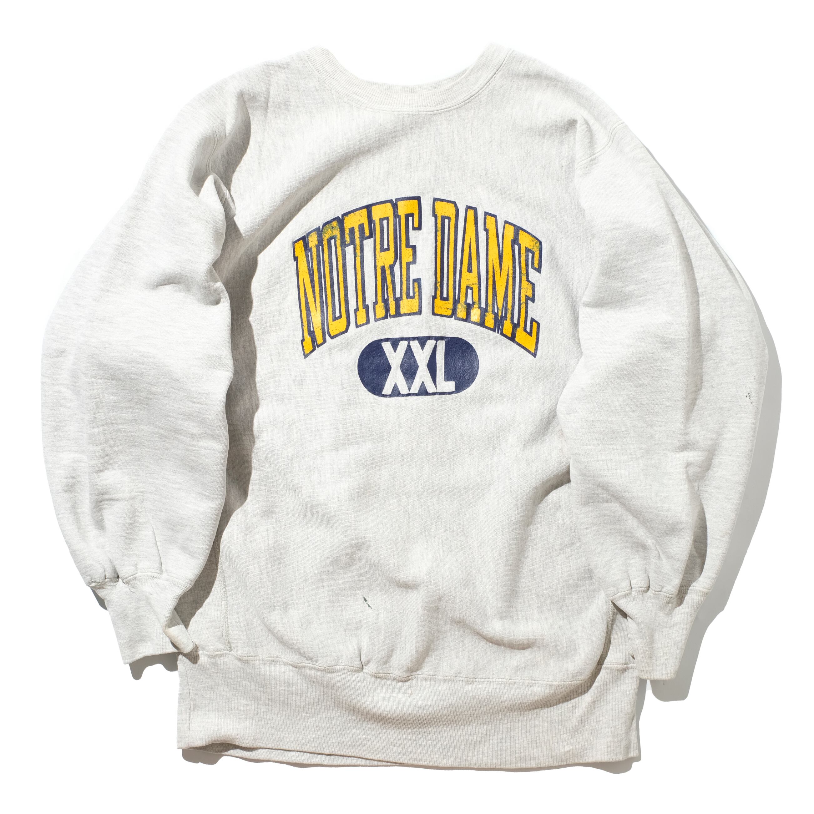 こちらはお好きな方も多いノートルダム大学のラバープリントの入る一枚。グレーに黄色とネイビーのプリントが魅力的です。通常見かけるものより珍しい印象のカプセルのプリント、定番ですがかっこいいです。