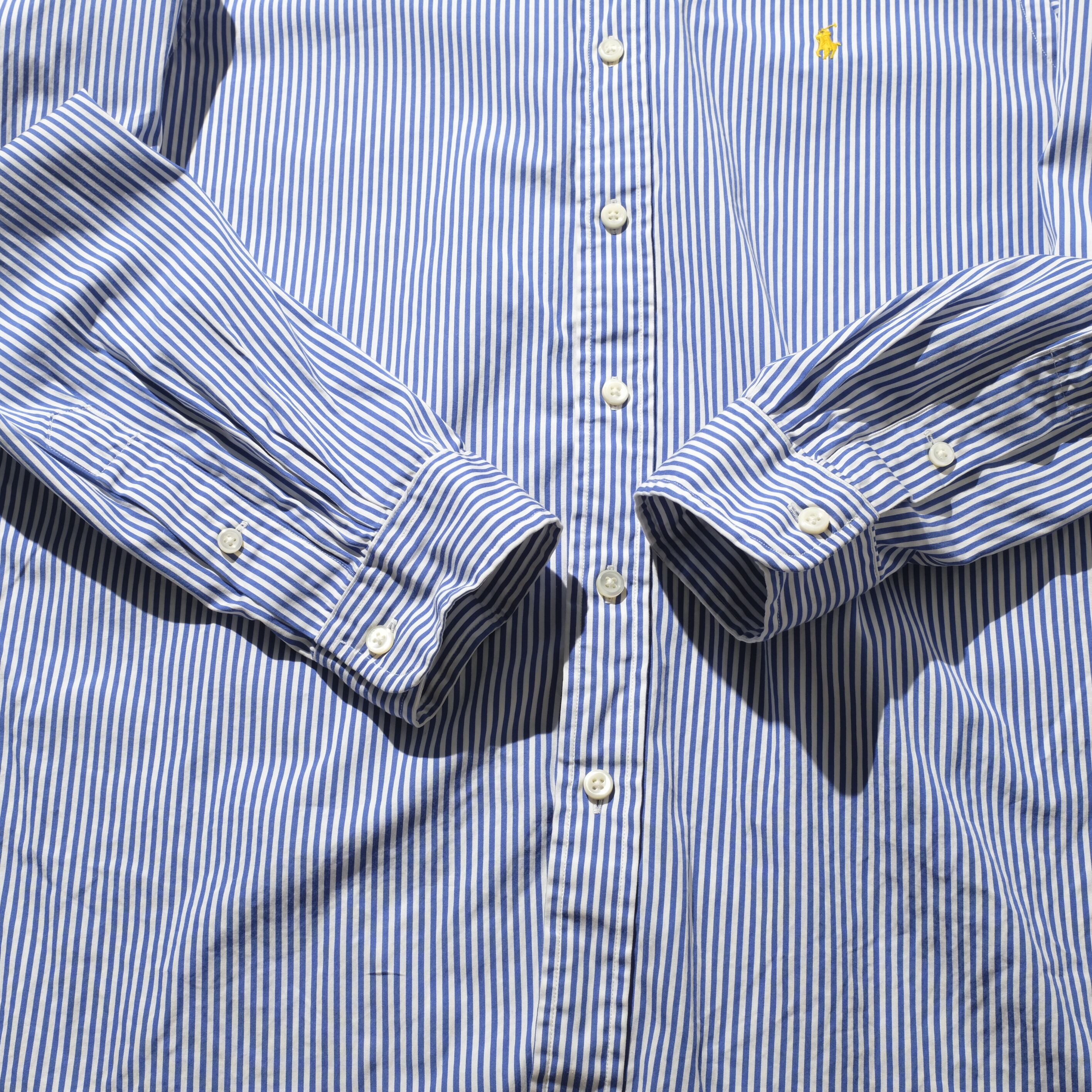 いわゆる高密度のブロード生地を使用した一枚。ラルフローレンで、こういった定番的なストライプシャツでお探しの方も多いのではないでしょうか。
