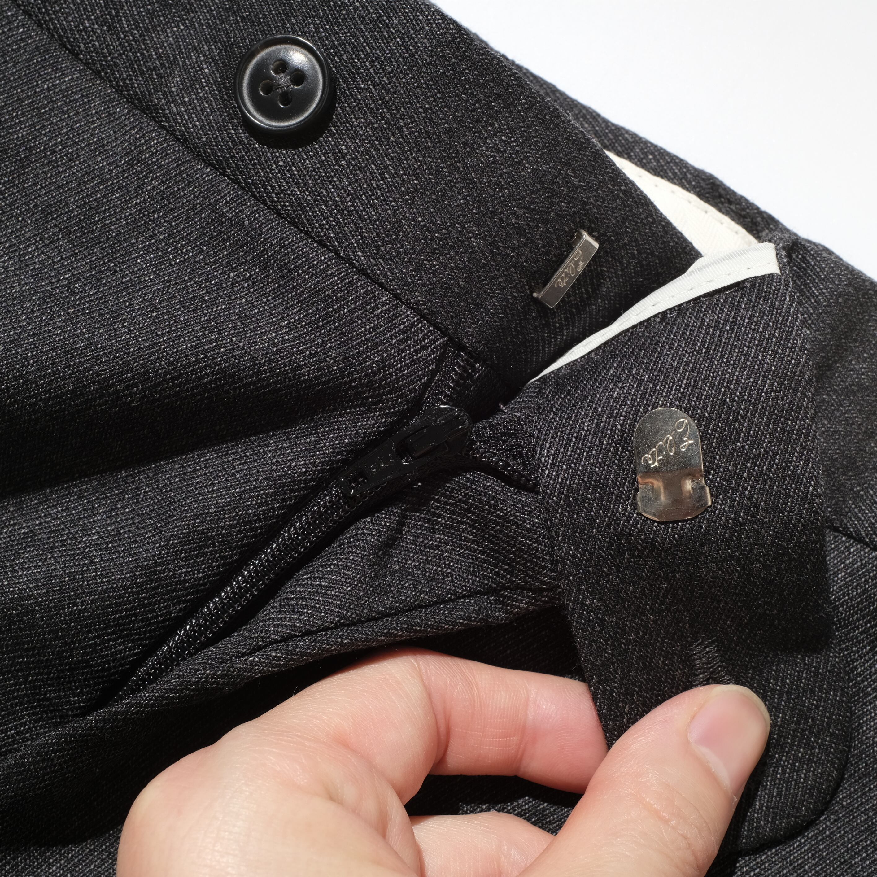 ウールといえど薄手なものですので、真冬以外のシーズンにお楽しみいただける良い一本です。気兼ねなく穿ける、上質なスラックスをお探しだった方はぜひご検討ください。