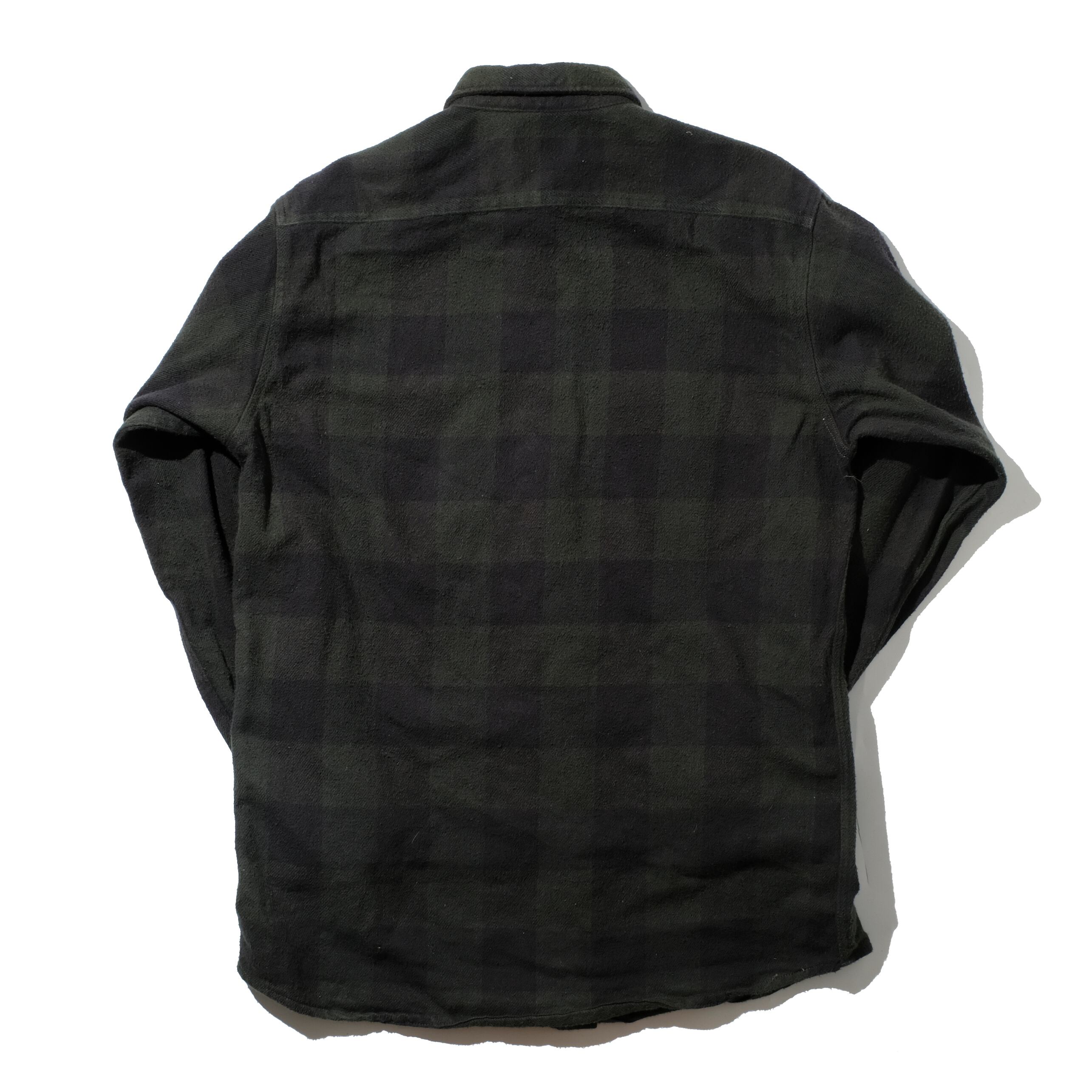 ブラックと濃いグリーンのいい配色のチェックが魅力的な一枚。ミリタリーのパンツやブラックのパンツなどと相性良さそうですね。またサイズも人気の着丈長め、L TALL。グッドレギュラーといえる一枚ではないでしょうか。是非ご検討ください。