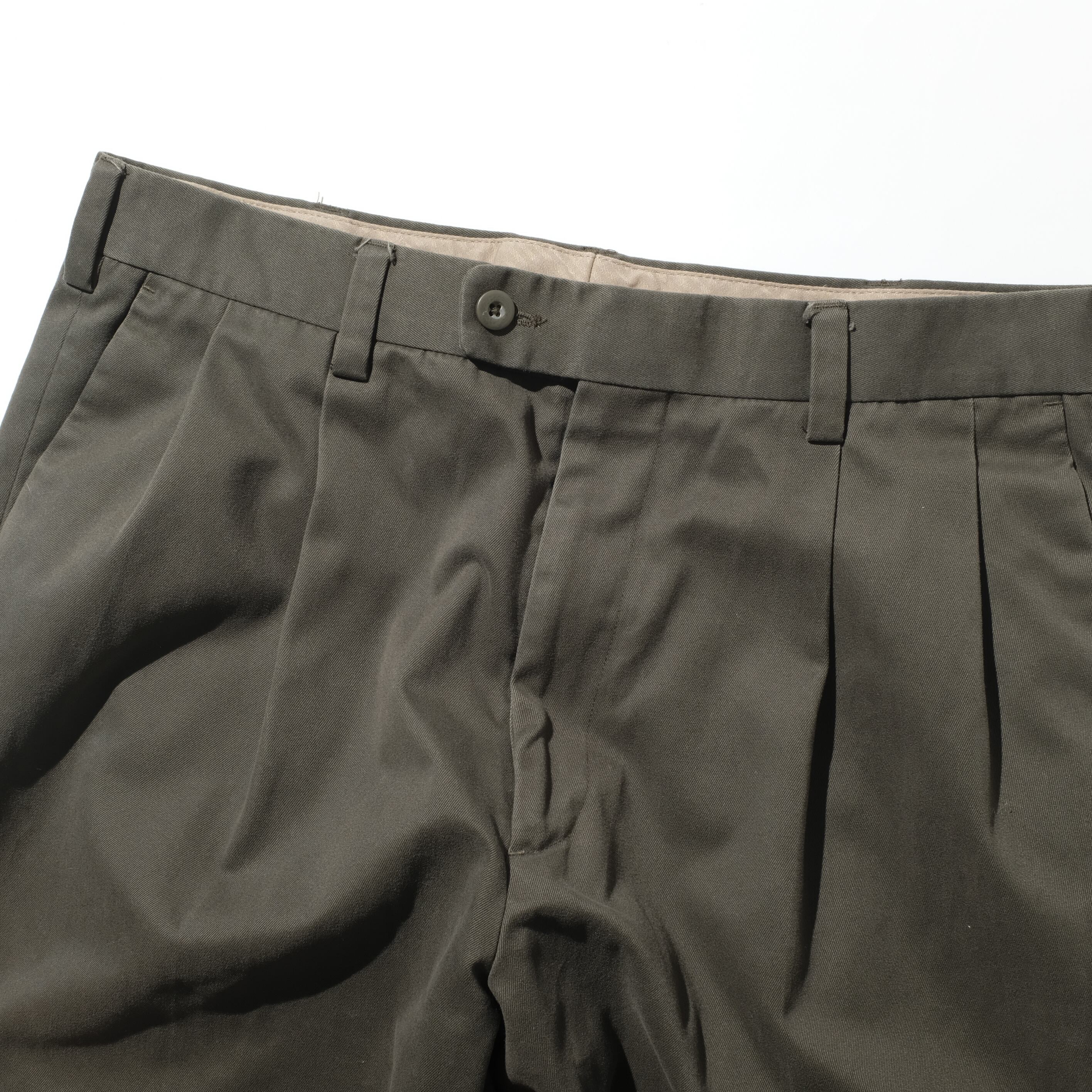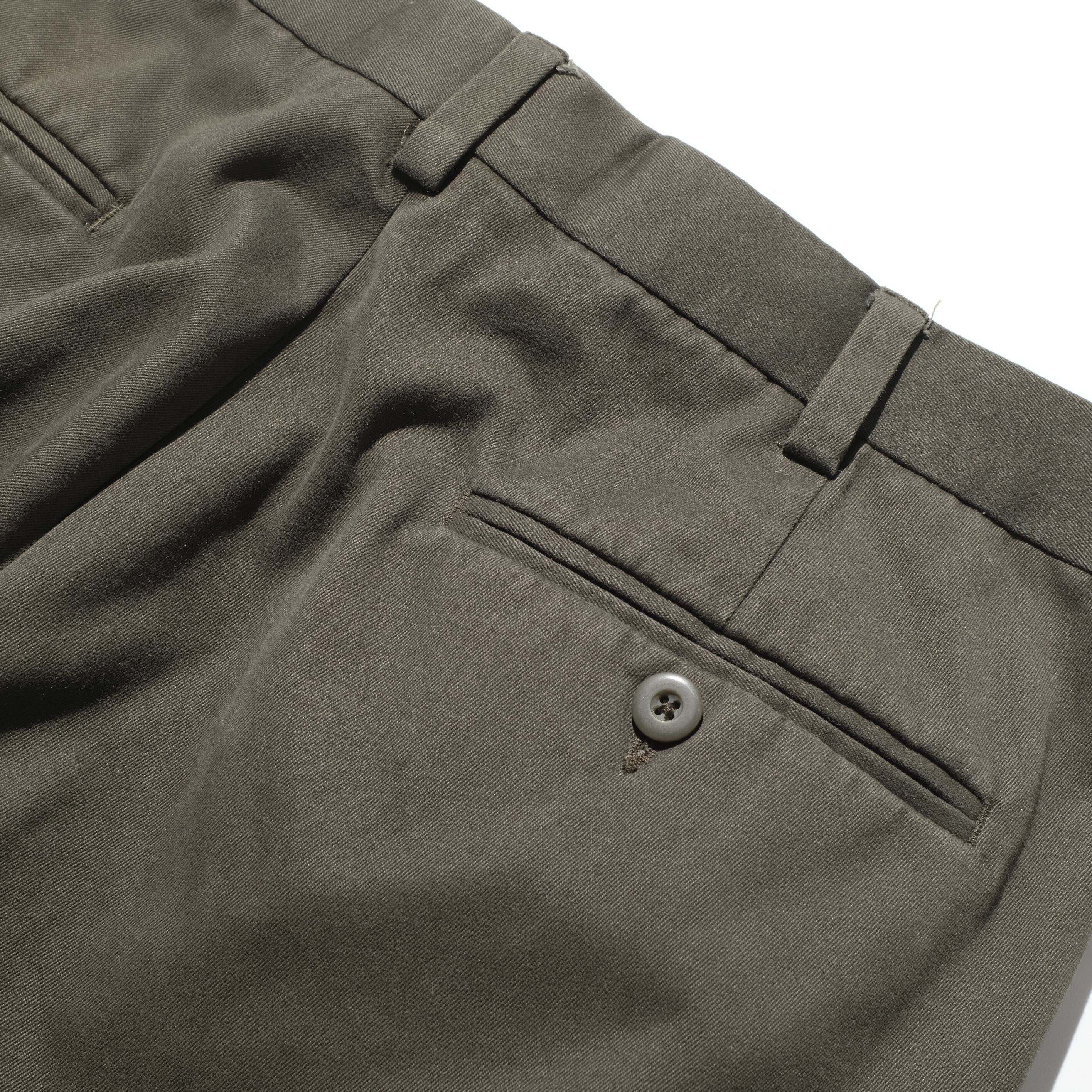 やはりそう聞くと納得の、やや起毛された温かみのある生地感。そしてこの綺麗なシルエット、ダークオリーブのカラーと魅力満載の一本です。90'sのものの中ではなかなか良いレギュラーのパンツのひとつといえるのではないでしょうか。